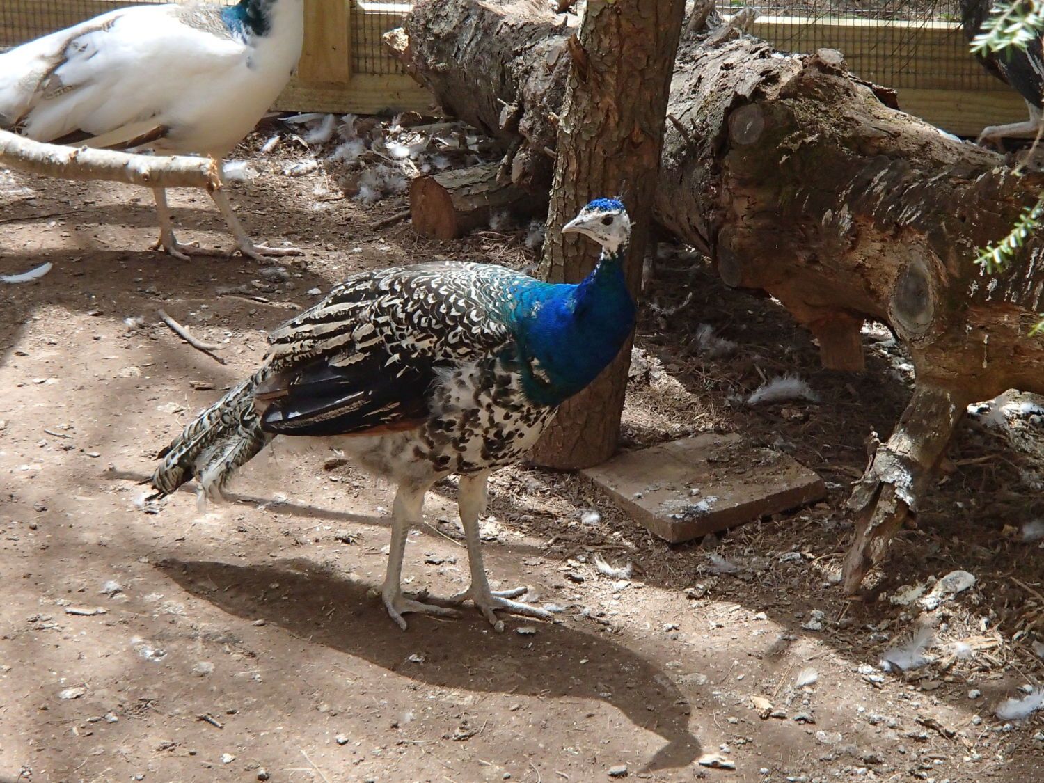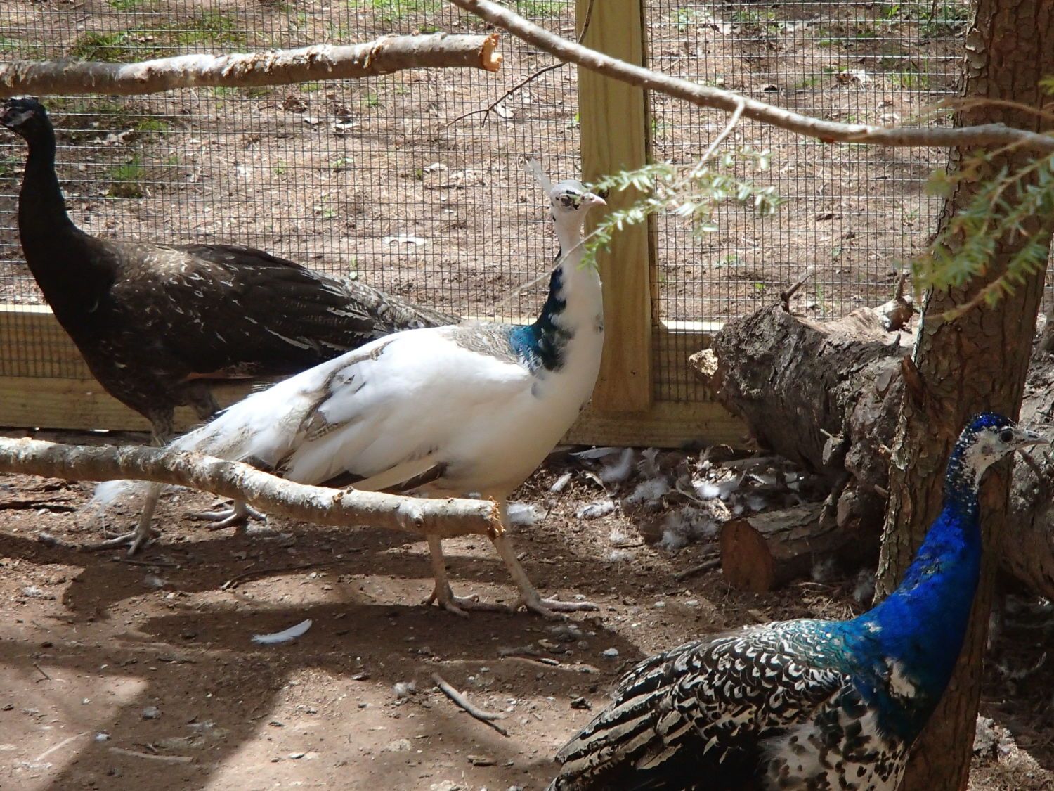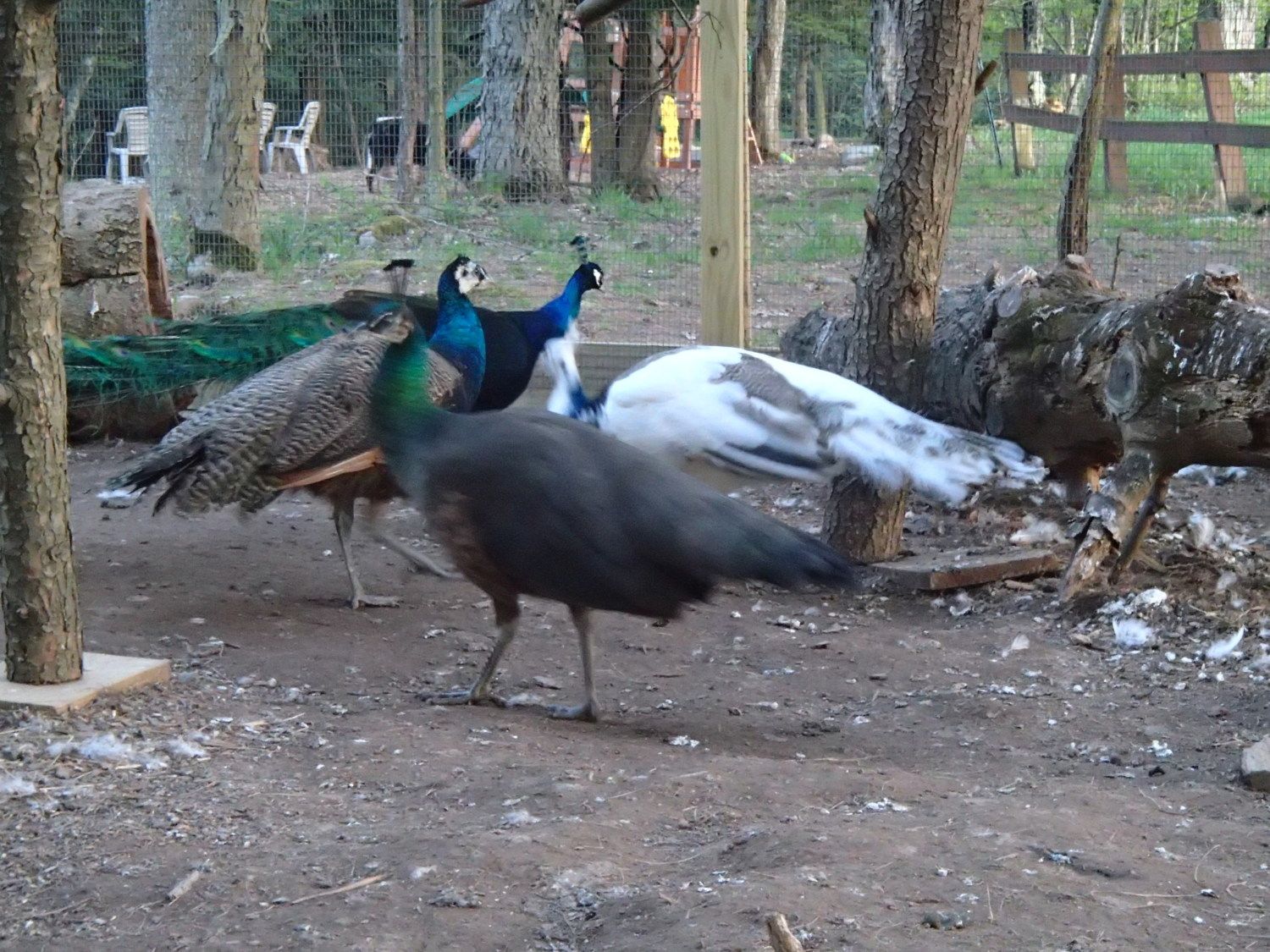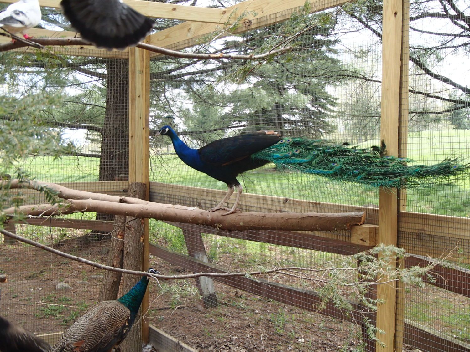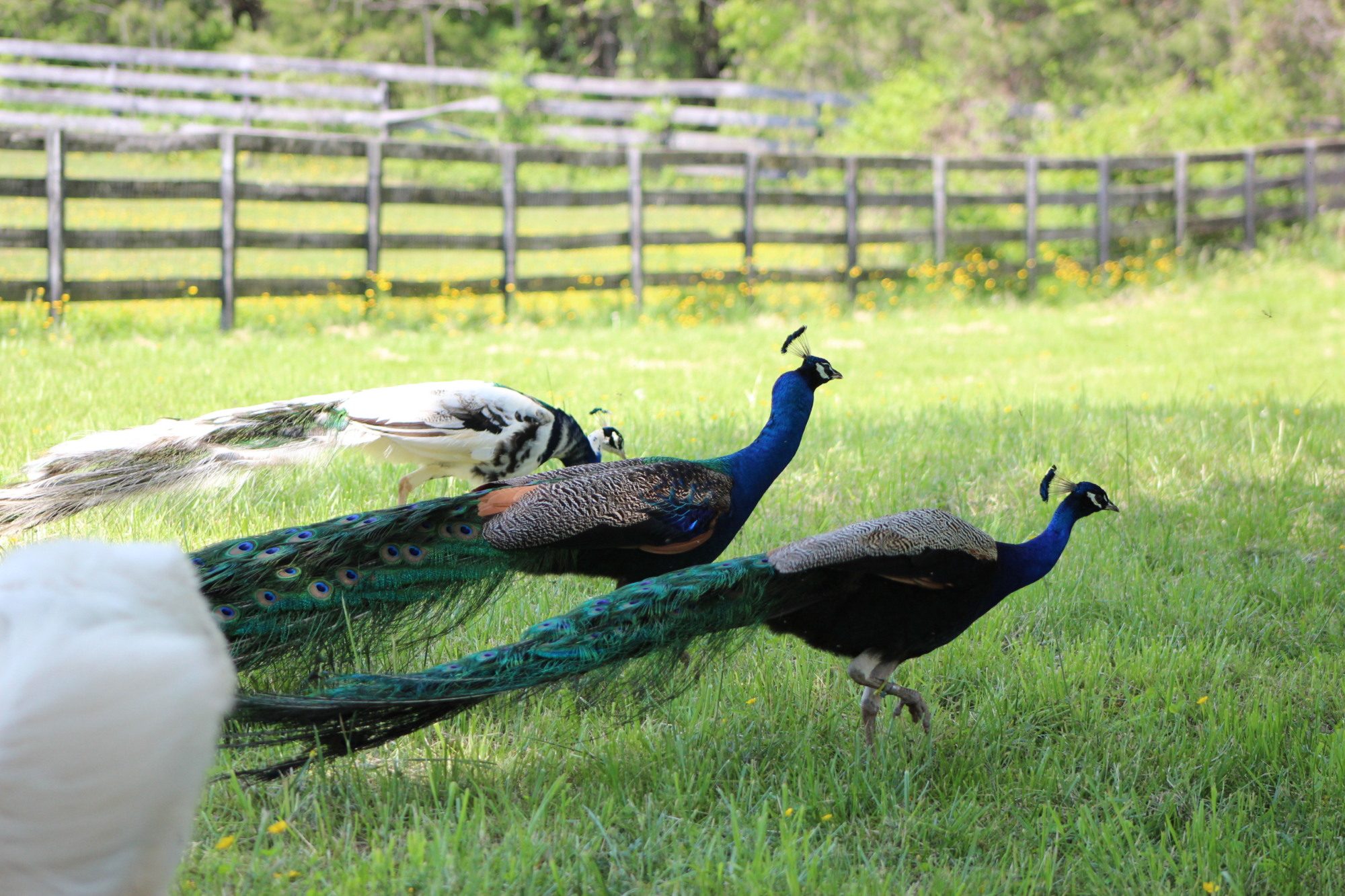 Thought I would ask the peacock experts what this boy's color maybe. I know he is not an average india blue because his color is different on his wings and his tail is more purple than green in comparison to my india blue male. He showed up this morning hanging with my two free roaming boys. Seems to be about 2.5 - 3 years old. His spurs are just growing in like my india blue boy. I am pretty sure he was abandoned at our house. He isn't afraid of people and has been openly welcomed by our boys. If he decides to stick around he is more then welcome to have a permanent home here. I'm sure my dad will be tickled pink to have another peacock lol.