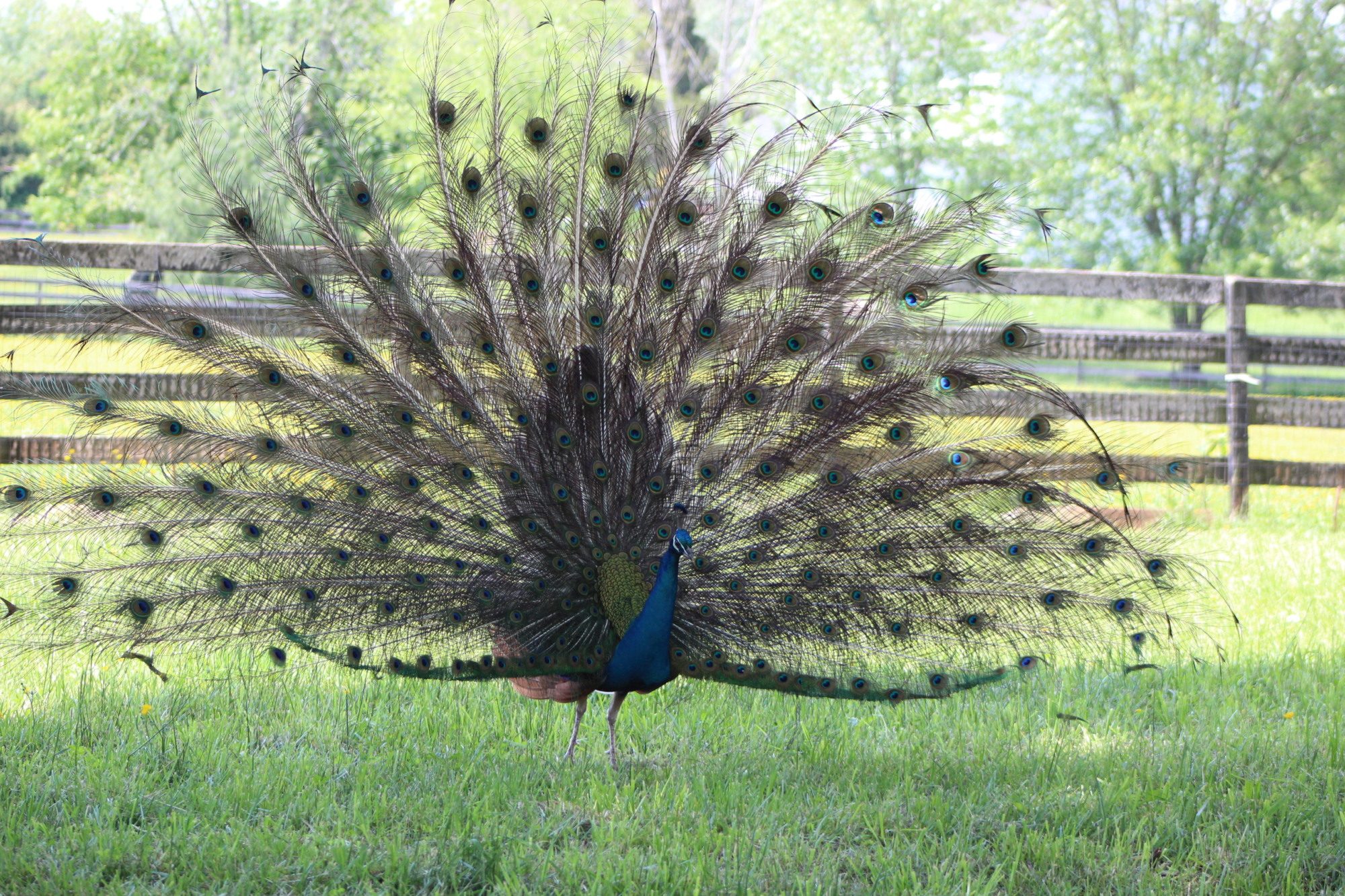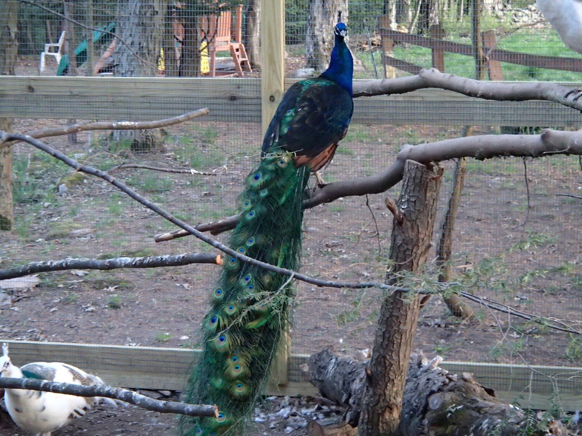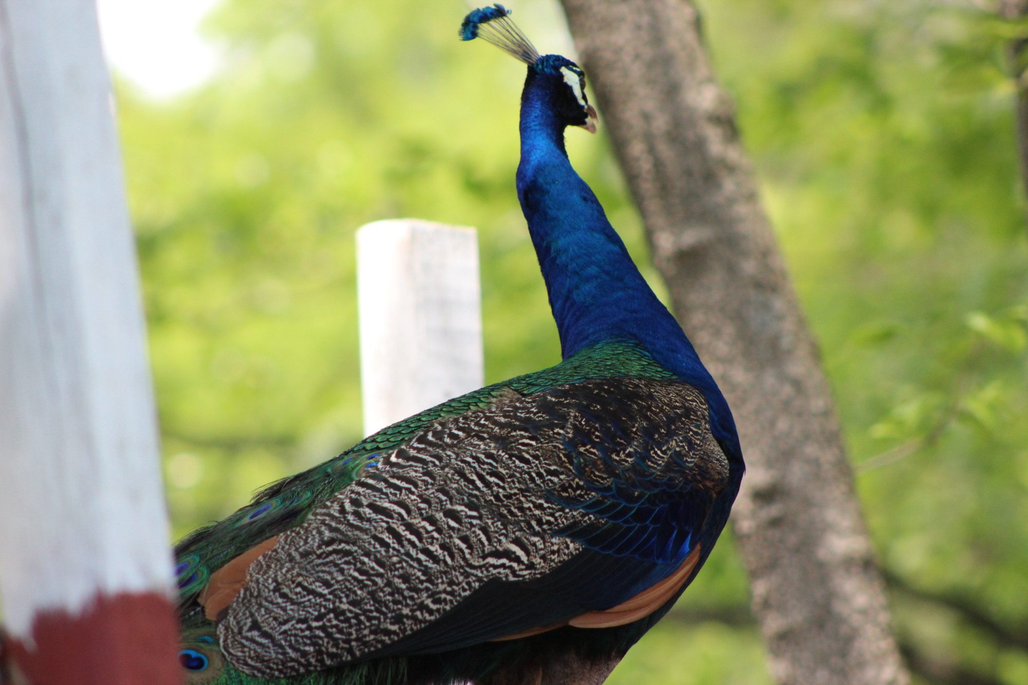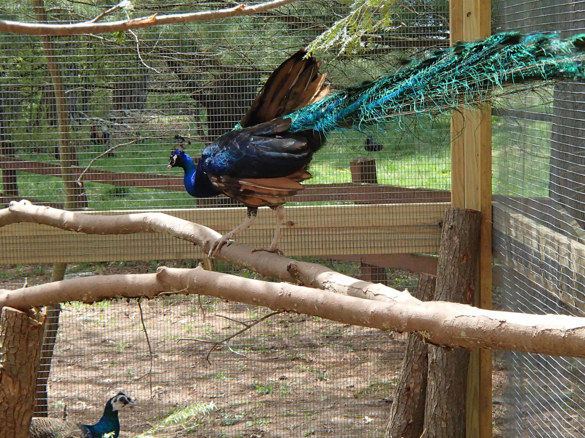 Thought I would ask the peacock experts what this boy's color maybe. I know he is not an average india blue because his color is different on his wings and his tail is more purple than green in comparison to my india blue male. He showed up this morning hanging with my two free roaming boys. Seems to be about 2.5 - 3 years old. His spurs are just growing in like my india blue boy. I am pretty sure he was abandoned at our house. He isn't afraid of people and has been openly welcomed by our boys. If he decides to stick around he is more then welcome to have a permanent home here. I'm sure my dad will be tickled pink to have another peacock lol.