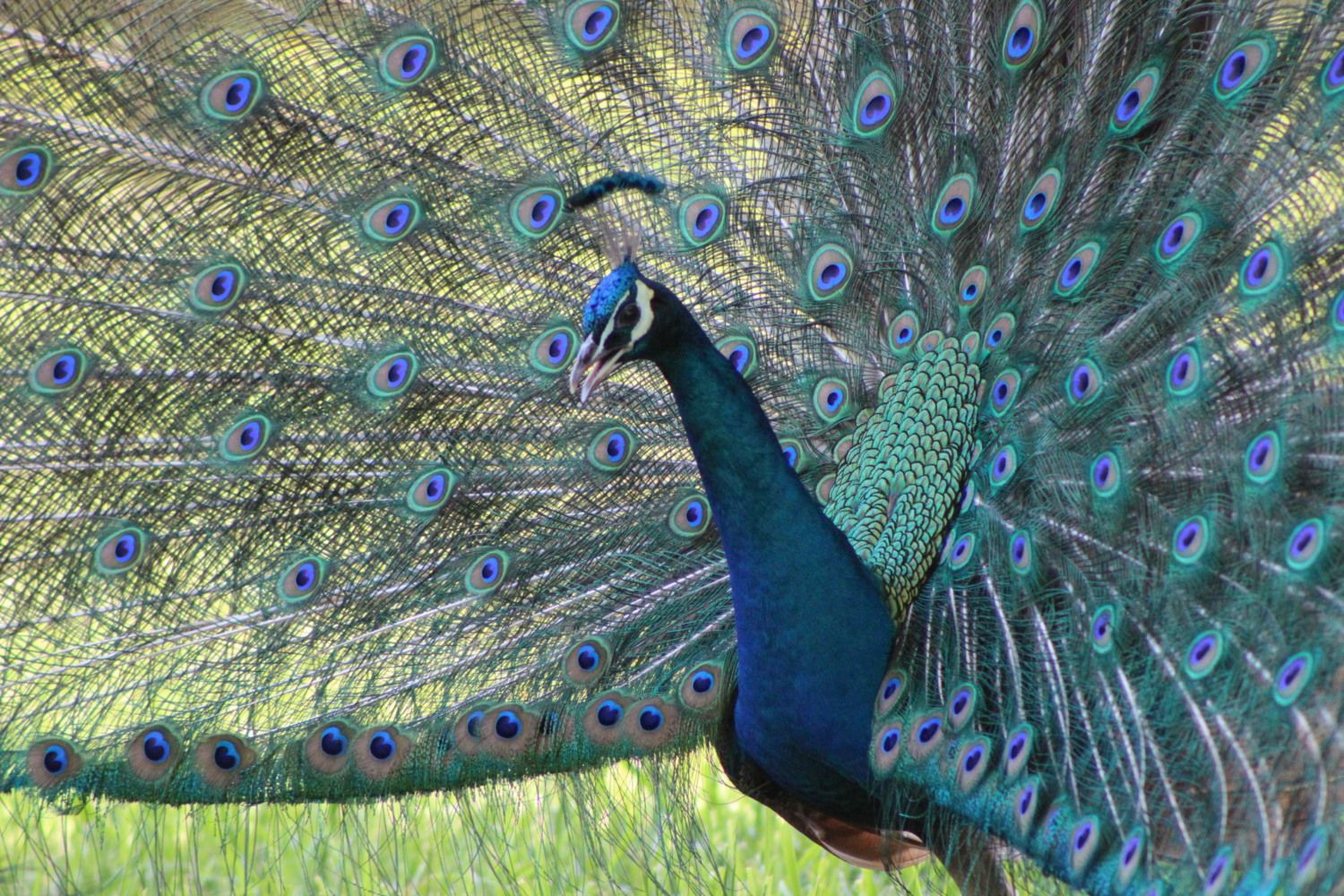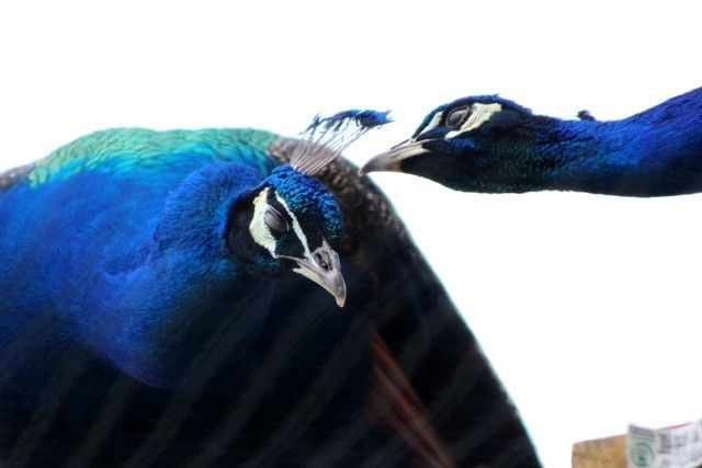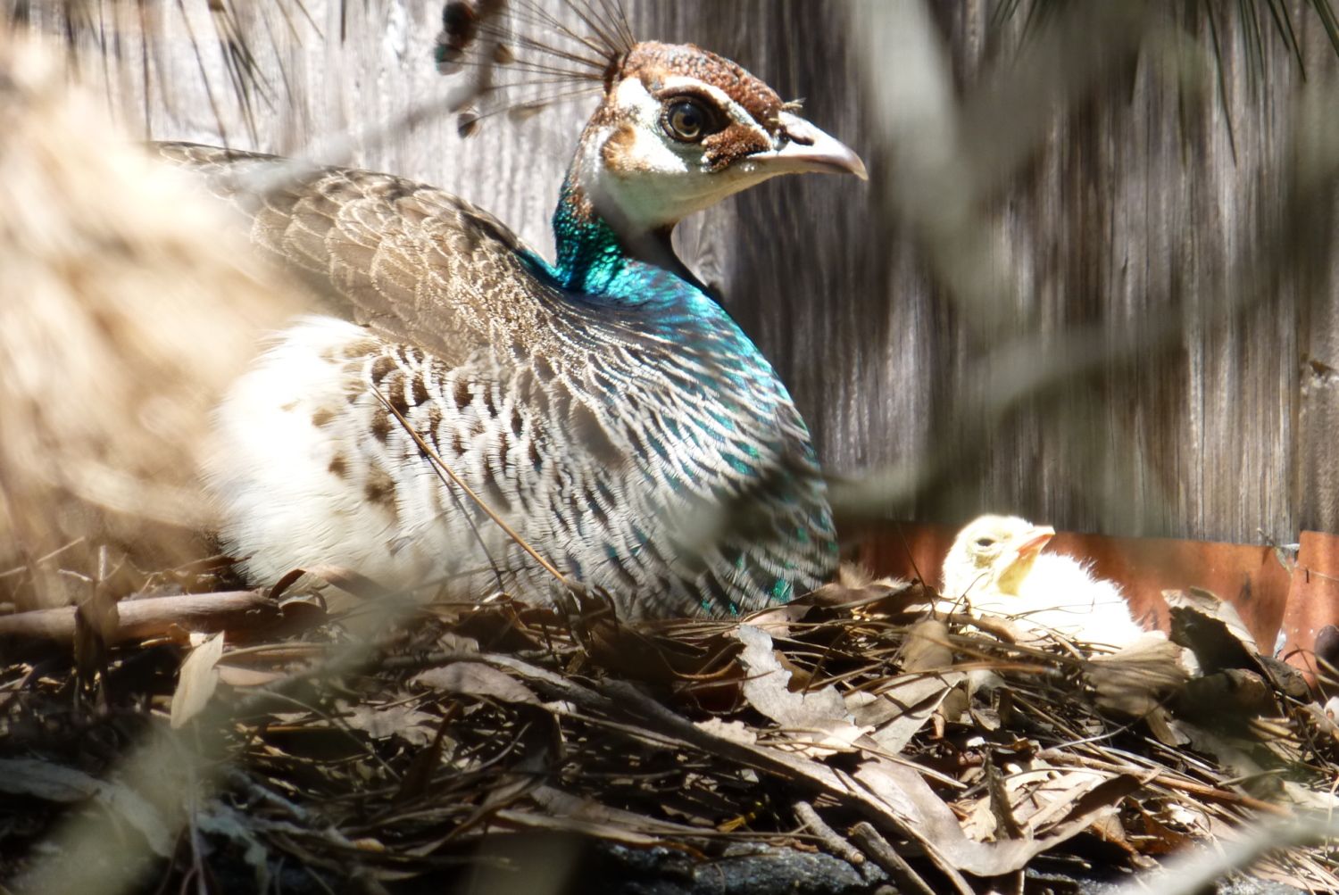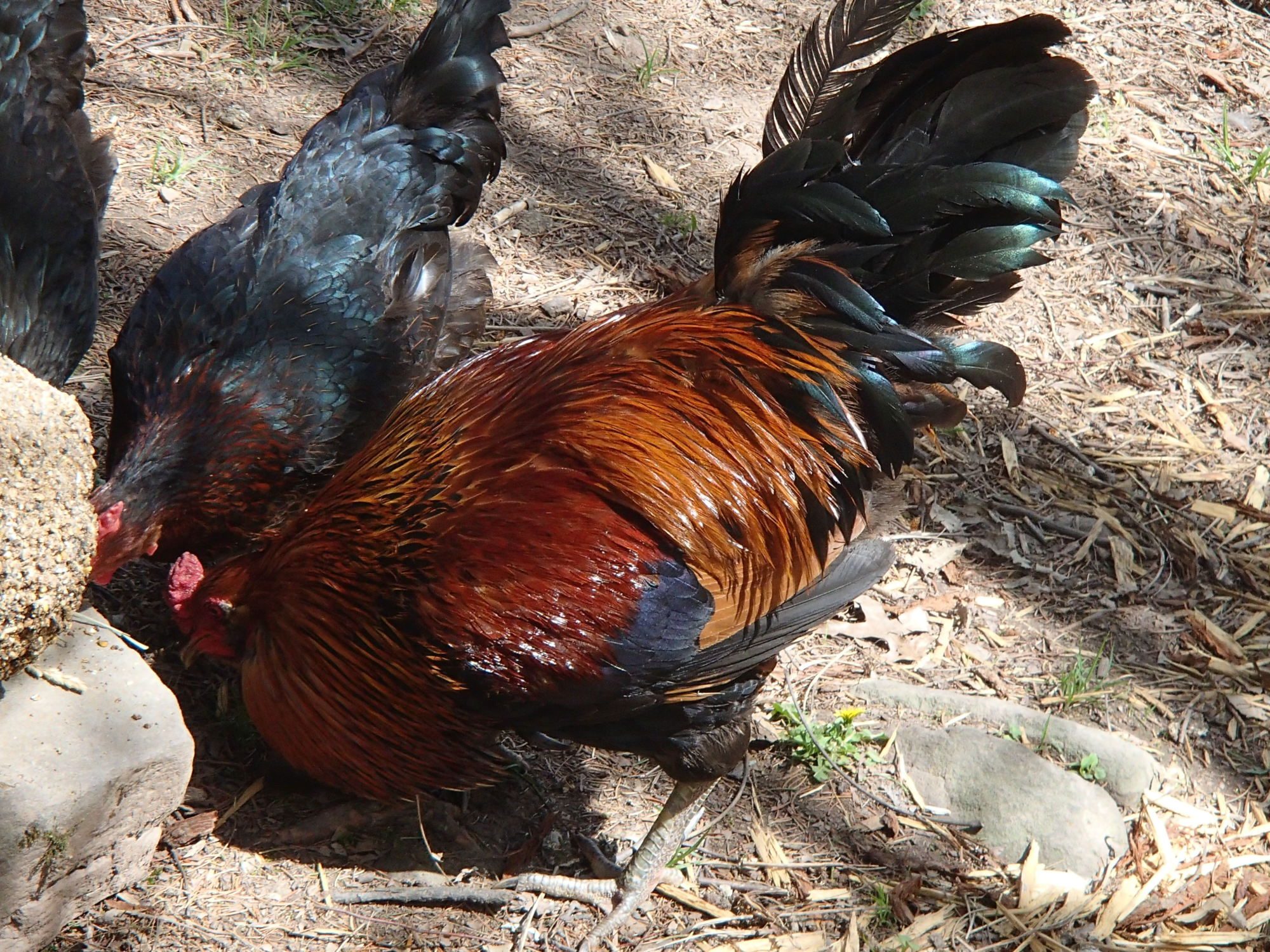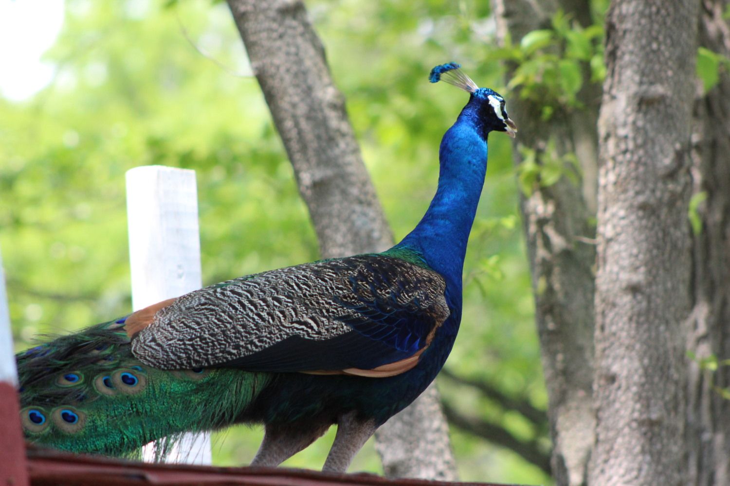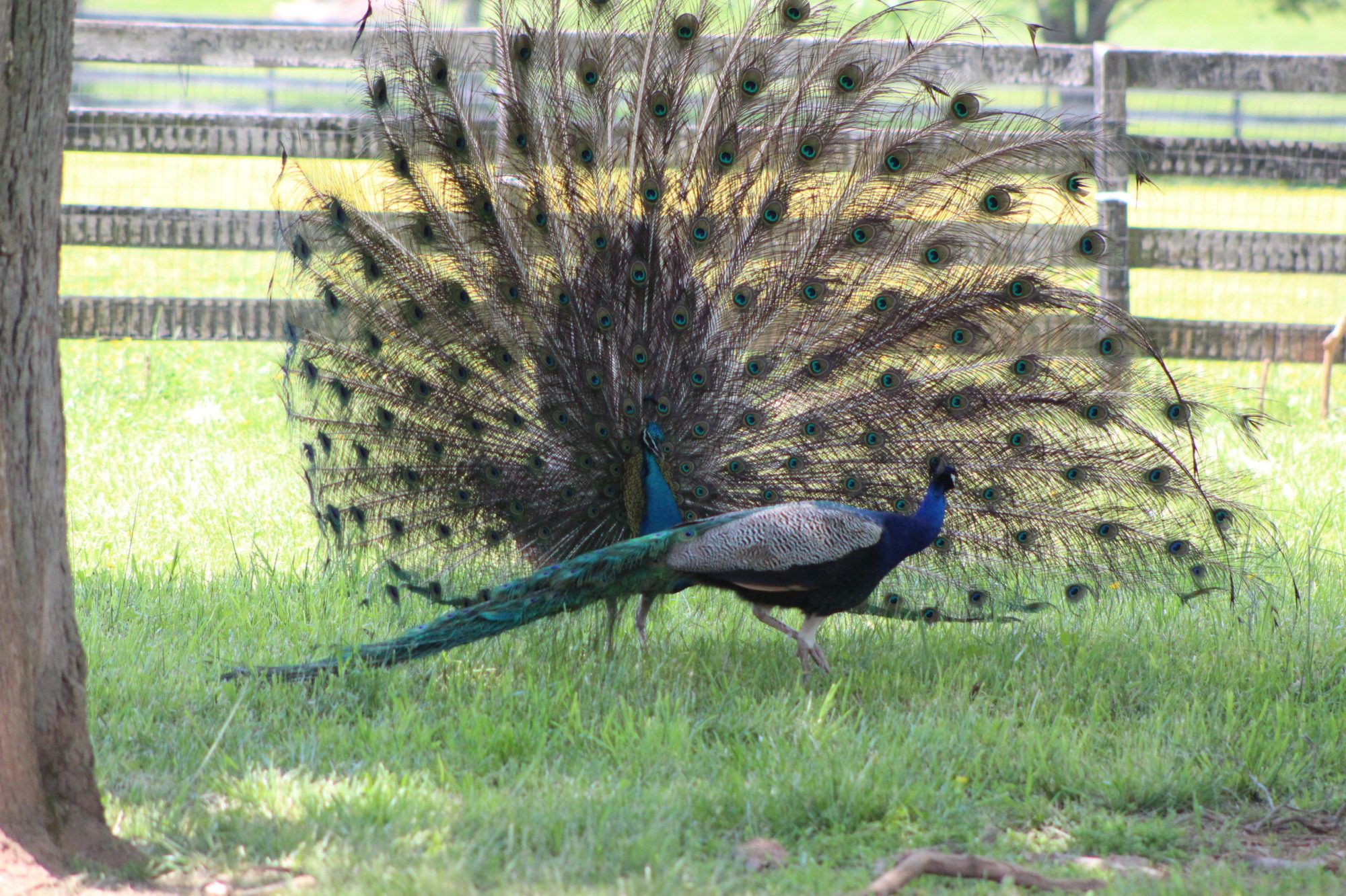 Thought I would ask the peacock experts what this boy's color maybe. I know he is not an average india blue because his color is different on his wings and his tail is more purple than green in comparison to my india blue male. He showed up this morning hanging with my two free roaming boys. Seems to be about 2.5 - 3 years old. His spurs are just growing in like my india blue boy. I am pretty sure he was abandoned at our house. He isn't afraid of people and has been openly welcomed by our boys. If he decides to stick around he is more then welcome to have a permanent home here. I'm sure my dad will be tickled pink to have another peacock lol.