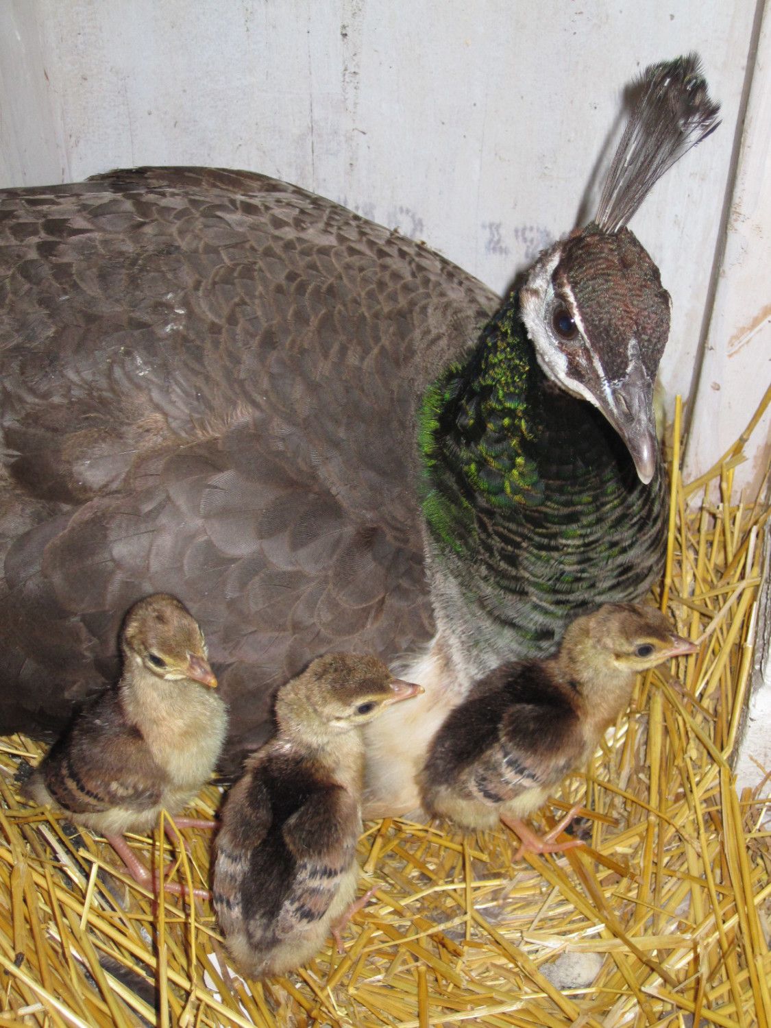 Okay have to show off my new peachicks. Did not know my India Blues had the recessive Pied gene hidden in there, but I've now got three Pied and 3 India Blues, just hatched yesterday.