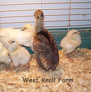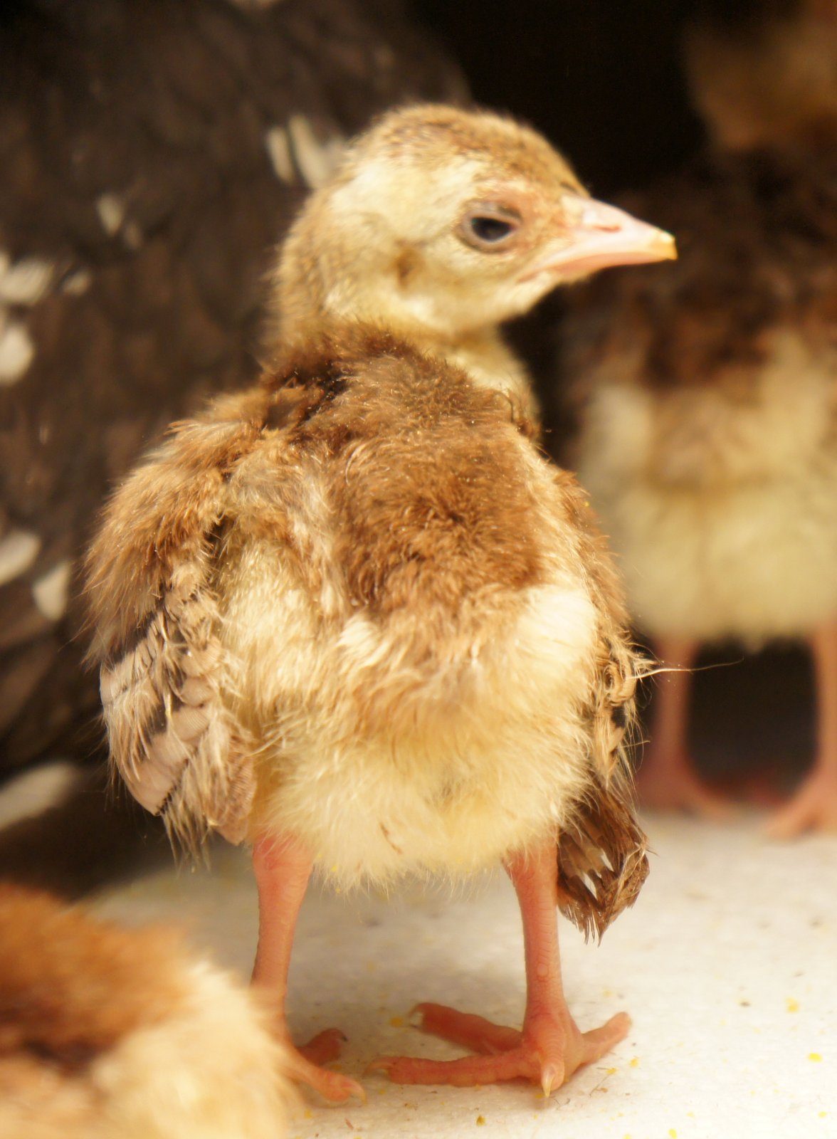 And my baby pea bird is doing good. I have more eggs under hens so I hope to have more than just this one this year. This is an IB but I have eggs from the silver pied and Bronze incubating under fuzzy butts.
