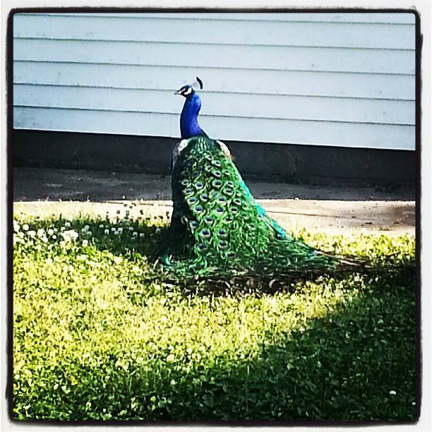 This is [was] Argus, my Indian Peacock. He was the coolest thing ever and he recently passed away. I have a couple of peafowl eggs in the incubator now, ready for hatch in 9 days so while I'm excited for new birds, I still miss my original sweetheart.
