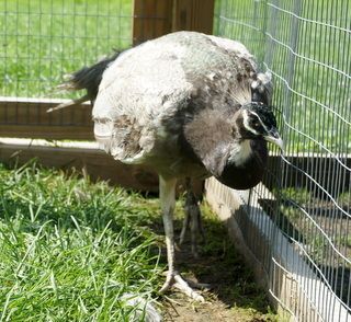 I was watching him and now that he is dozing in the sun he does have more a blue shine, so I am satisfied. The other good news is the peacocks are fine now and are acting like they have lived their whole life together.