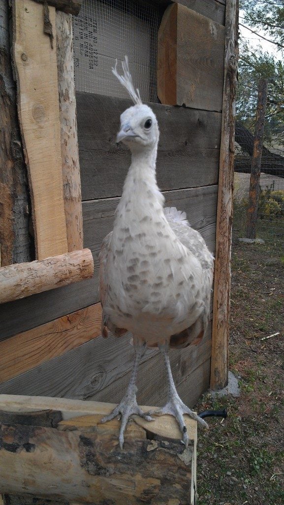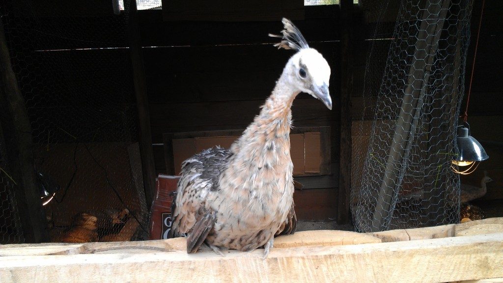 We live on a 40 ac farm in NW Missouri. We have the assorted chickens, Guineas, and Bourbon Red turks. Both of us just love the fowl and and have always in conversation added peafowl to our wish list. Low and behold we found 3 IB peachicks on Craiglist. After further research the same day we found a HUGE breeding facility 1 hour from our home. That little trip added 4 Spaldings to the farmstead. The 4 Spaldings are 18 weeks old and the 3 IB are 9 weeks old .