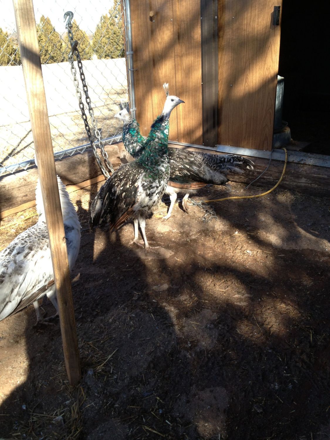 Thang needs help,,what kind we still don't know. He's not social and doesn't play well with people, Still don't know what to do with Thang this spring. I may put solid colored hens with him to get white and pied into them.
