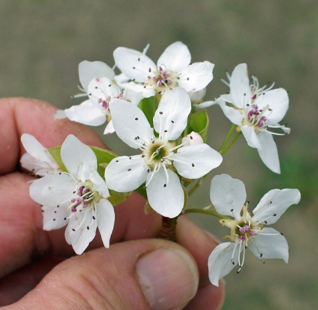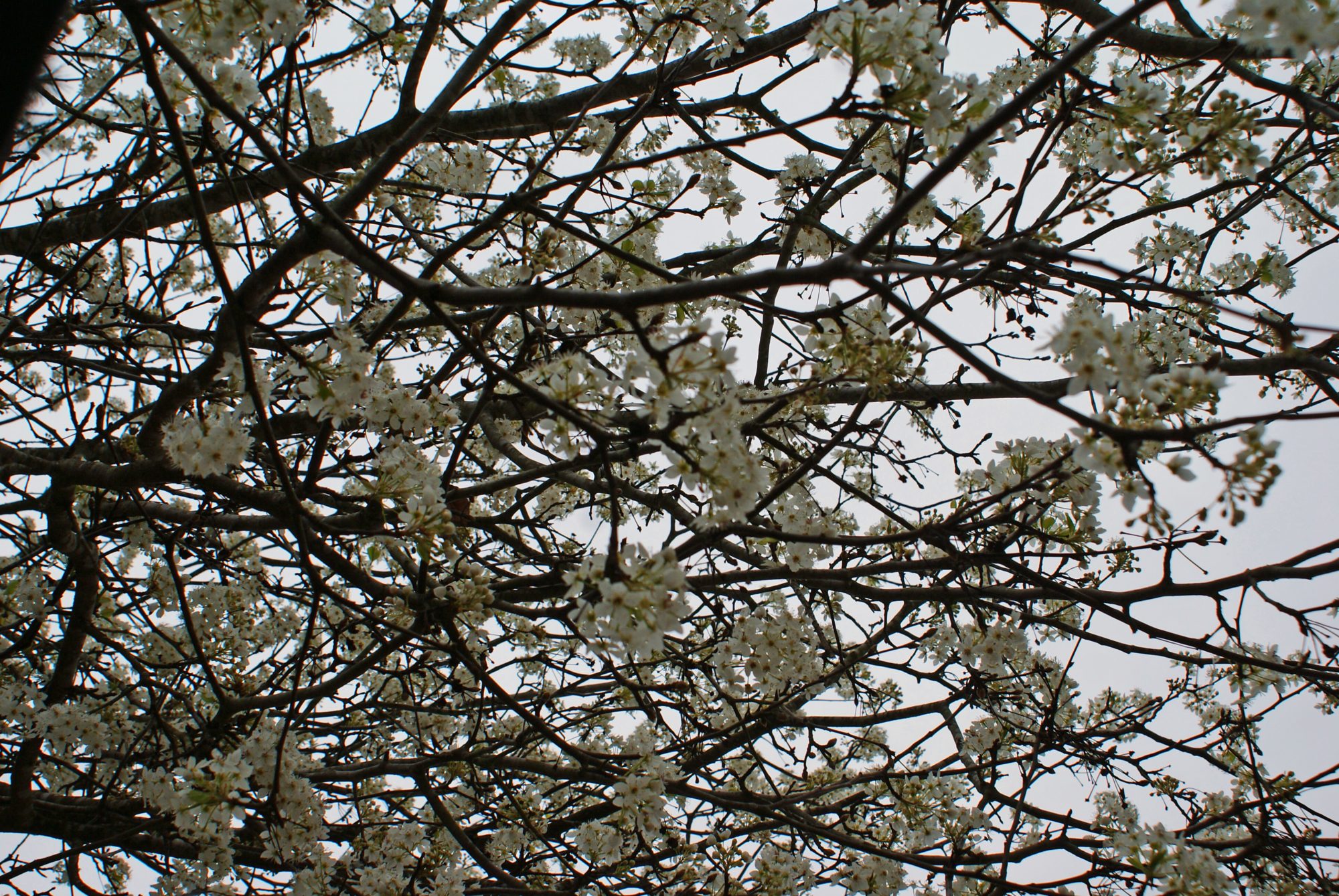 The crabapple in my peafowl pen is blooming too. The flowers are pretty, but they don't smell so pretty. My peafowl like to jump up and eat the tender new leaves.