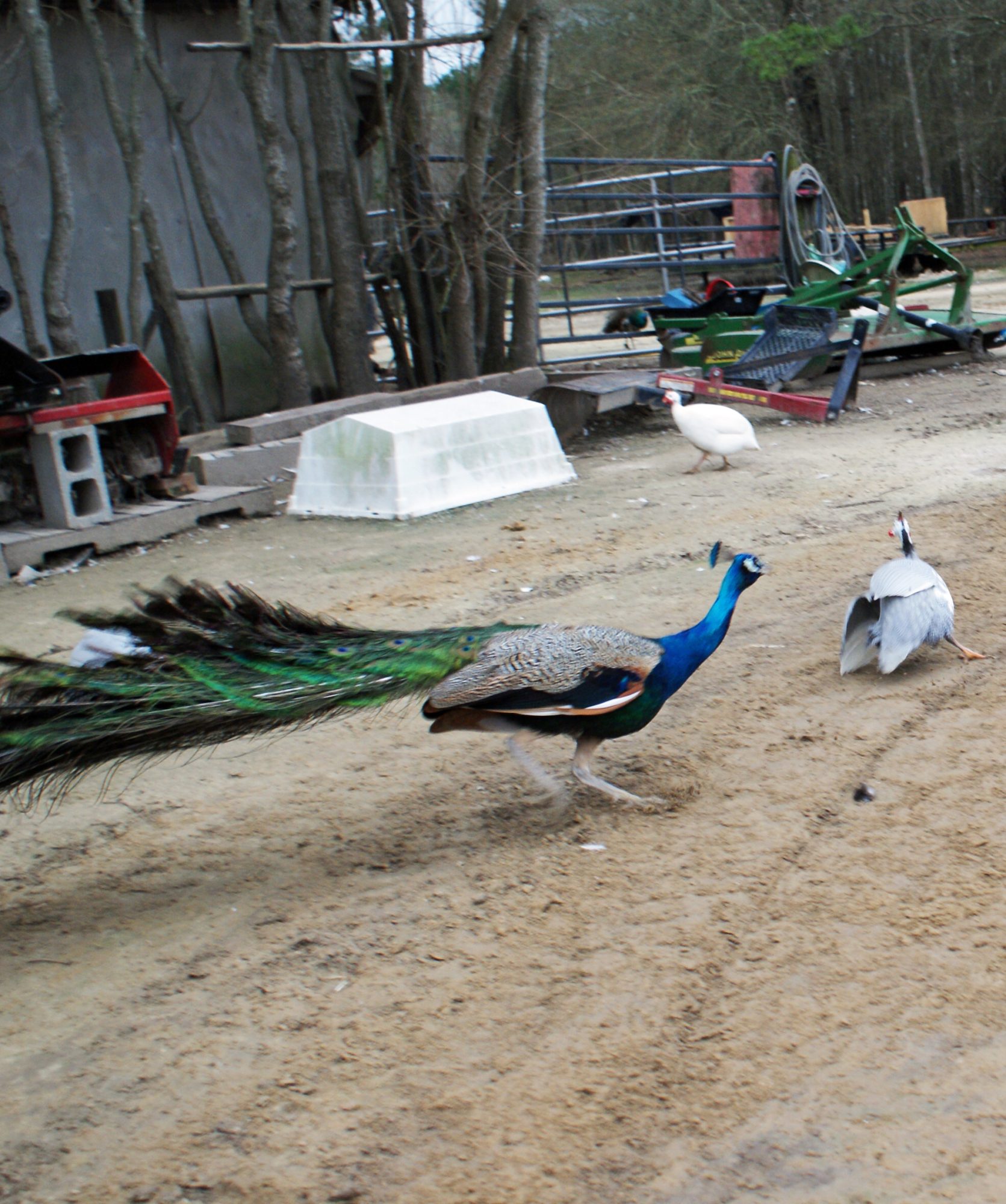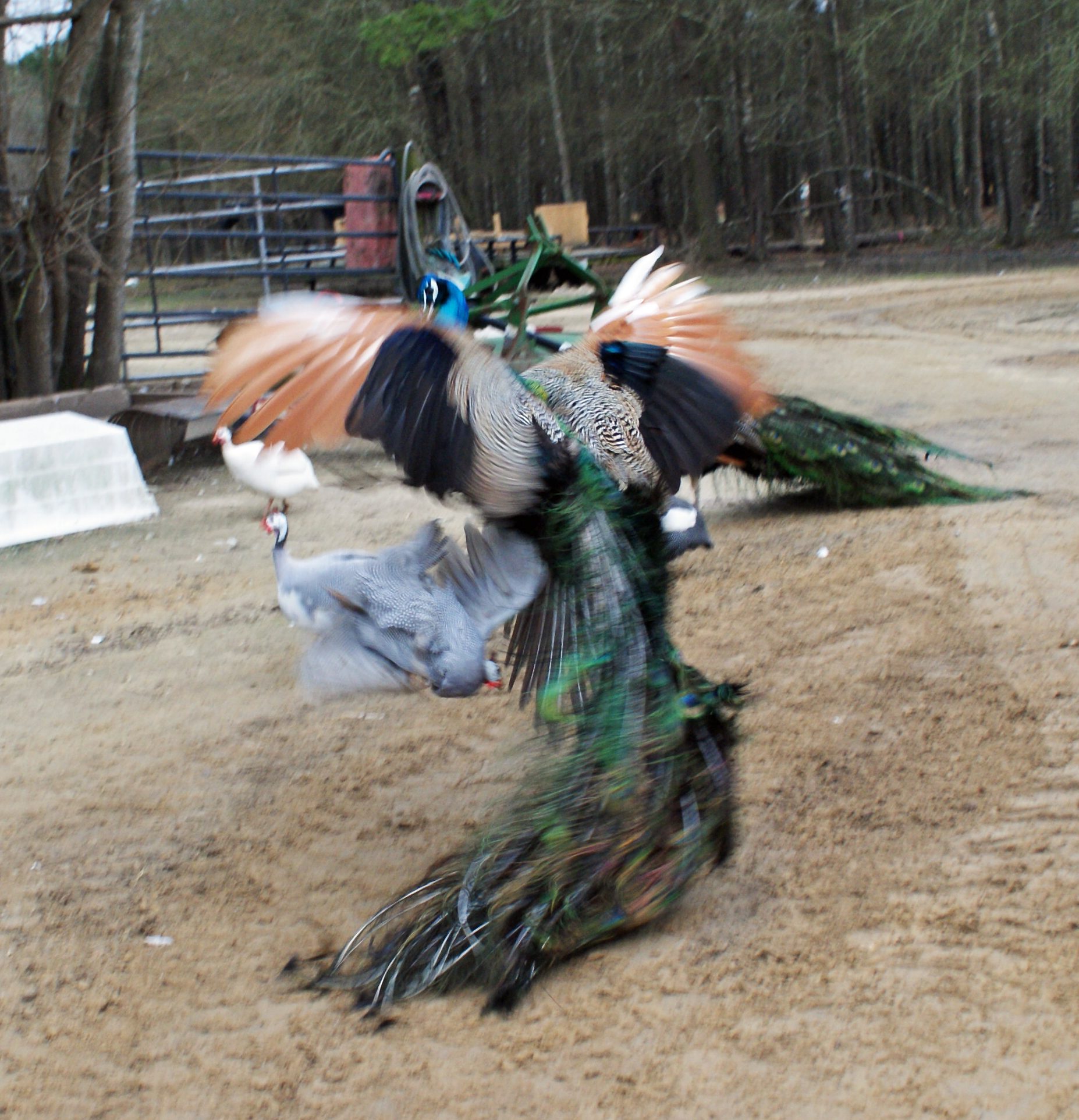 When you figure out the right setting for taking action photos of the peafowl let me know the settings. I like trying to get photos of them flying but it is always a blur. You got great photos of them! in action! How long do they do that for?