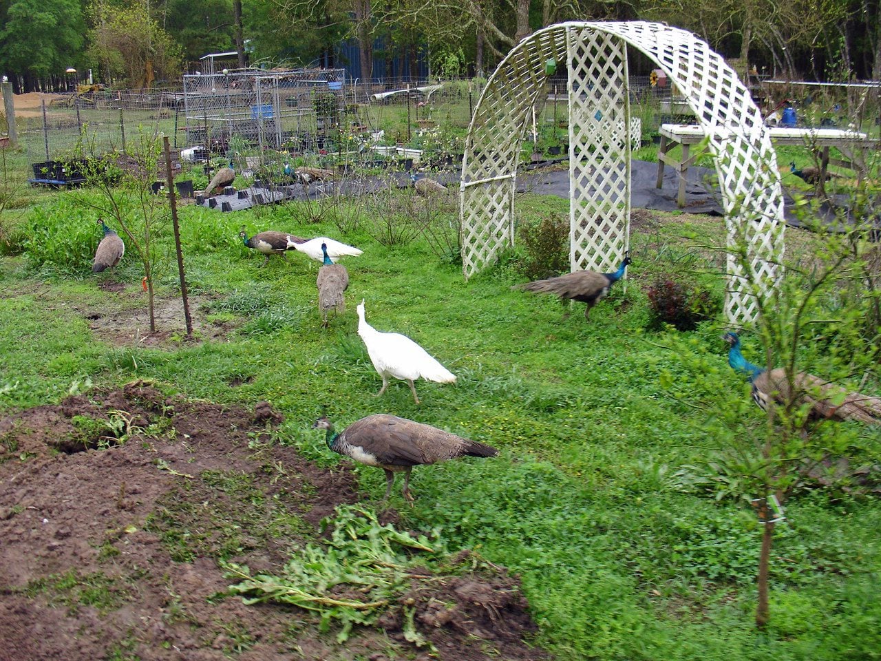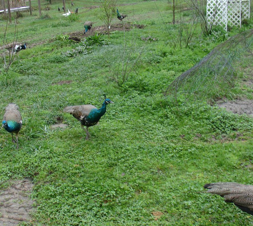 If you have a lot of patience, I think you will eventually be able to let them free range. You have to admit that Zaz has what may be the perfect environment for free ranging Peacocks, most of the rest of us do not. She can turn her's loose and expect things to go smoothly. I for one have neighbors who are too close and I have no dogs who will protect my birds. I had fewer neighbors a long time ago when I first got Peas, so I did free range them and I lost a lot of them to predators and mother nature. That is the main reason they are penned now and the ones who are trustworthy get to take turns free ranging during daytime only. I do not free range any that are under 2-3 years of age, it has been my experience that with maturity comes a certain calmness not found in juveniles. Plus they have had that much more time to see this place as "Home" and home is where the hens are!