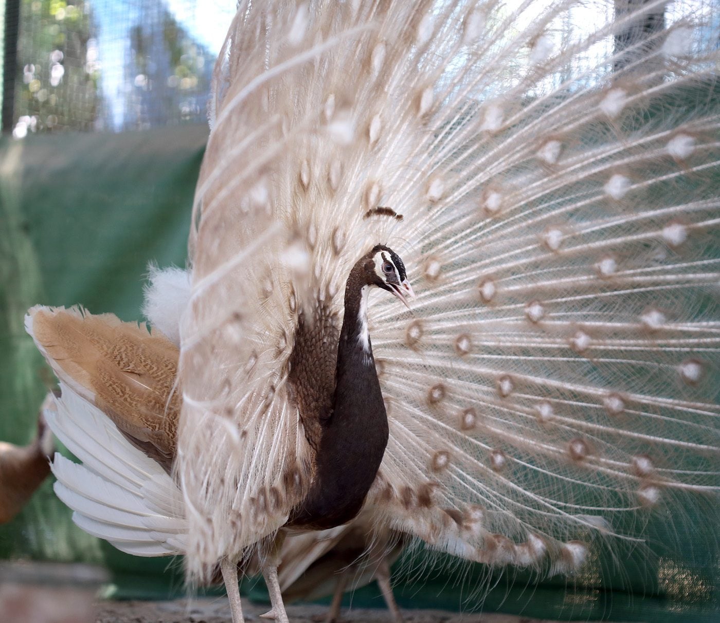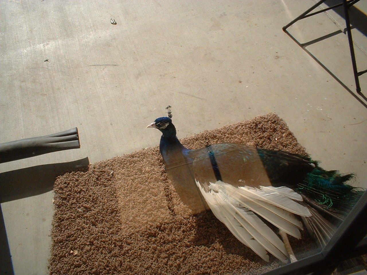 Nice bird and nice pictures, i think most of W/E peacocks had white flight feathers specially if they got two copies of w/e, all my WE peacocks had white flight feathers.Dany12, it's interesting you say that becuase frenchblackcopper also mentioned that. I thought white eye peafowl had white flight feathers, a white throat patch, and could have random white feathers, which in my peacock case are on his wing. I can go out now and get some pictures.