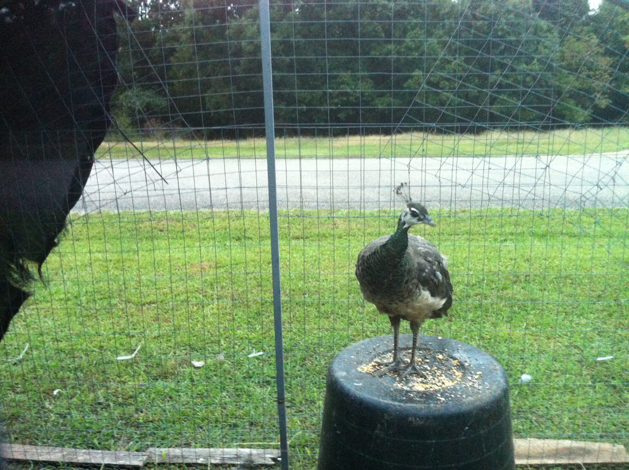 Raj after his two day walkabout on the way back to his pen, He got loose from his temporary pen, which I had moved him to because Leonard was showing his dominance in the pen with penny.
