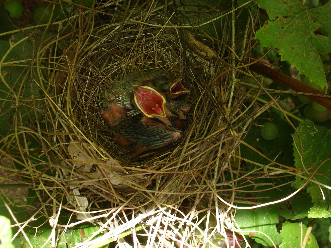 Baby redbirds in my grape vines, there were 4 eggs but only 2 hatched.