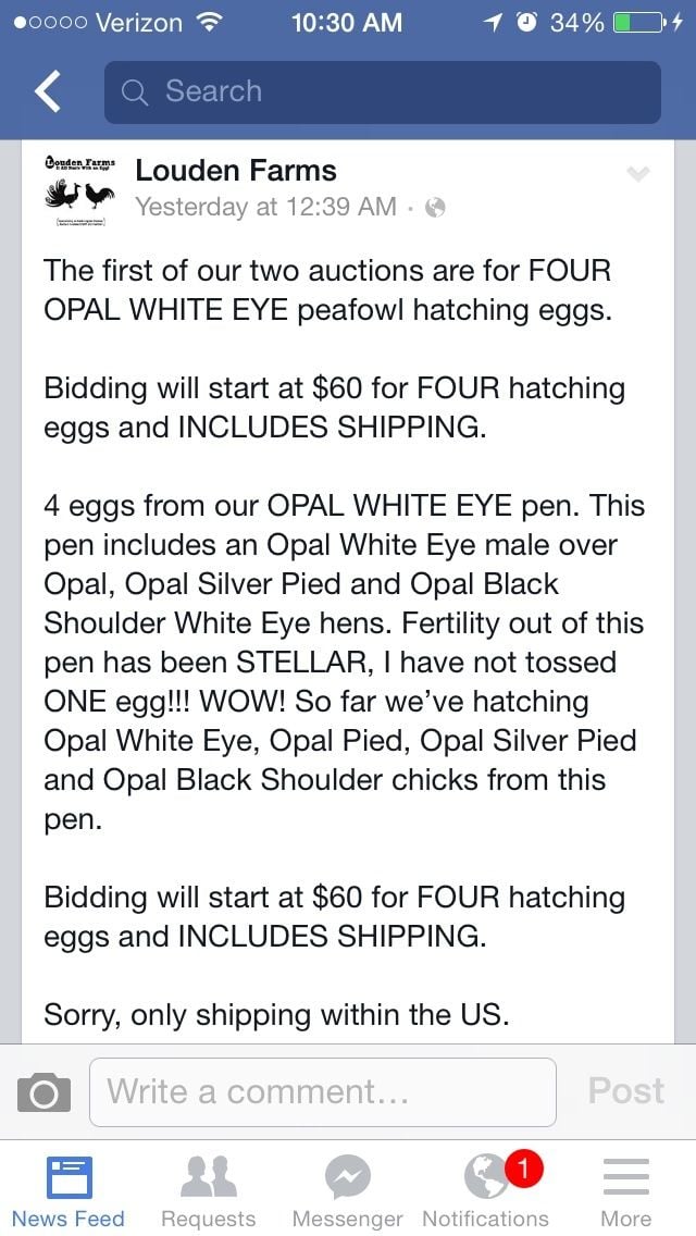 Congrats! The pictures I just posted are of my Opal WE peacock. They really are beautiful peafowl. Hope they hatch.