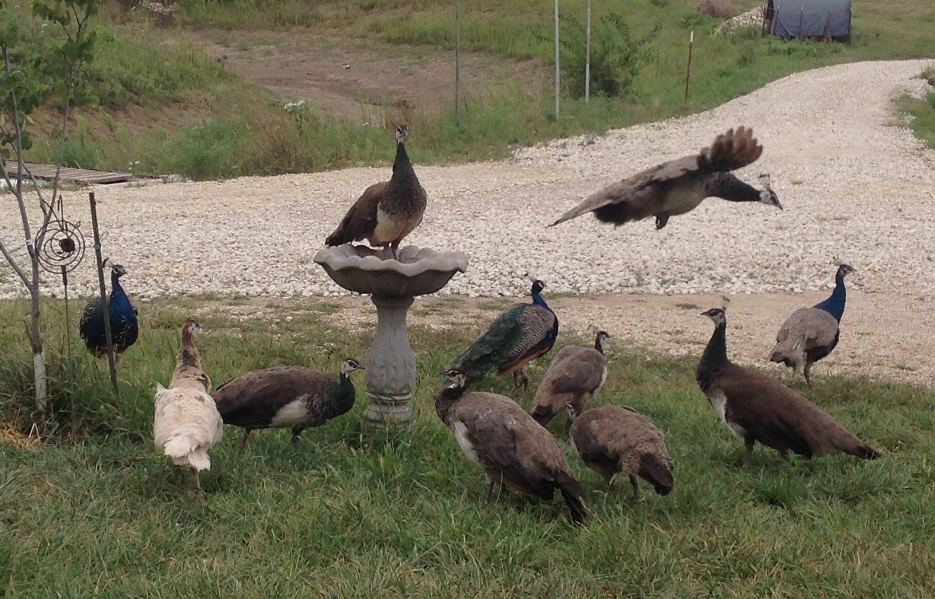 Peafowl flight! Sage Colbolt & Sage Peacock Yoga. Yummy grass This grass looks delicious Caca! What is that? Marshmallow's third time on a tether.
