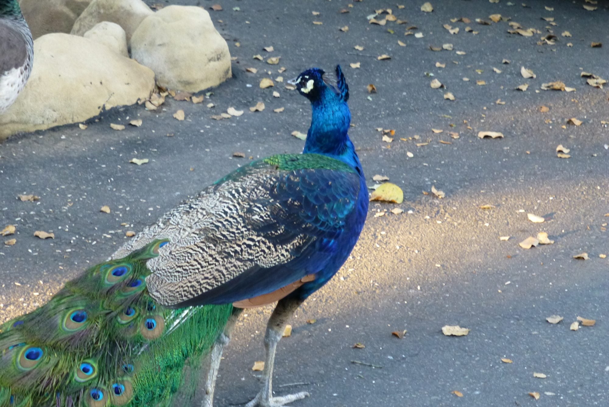 The funny thing is the first two pictures I found just searching "India Blue Peacock". I think as split to blackshoulder peacocks get older, the extra black area gets larger. It would be interesting if split to blackshoulder peahens show rust colored flight feathers. I am not sure if they do though.