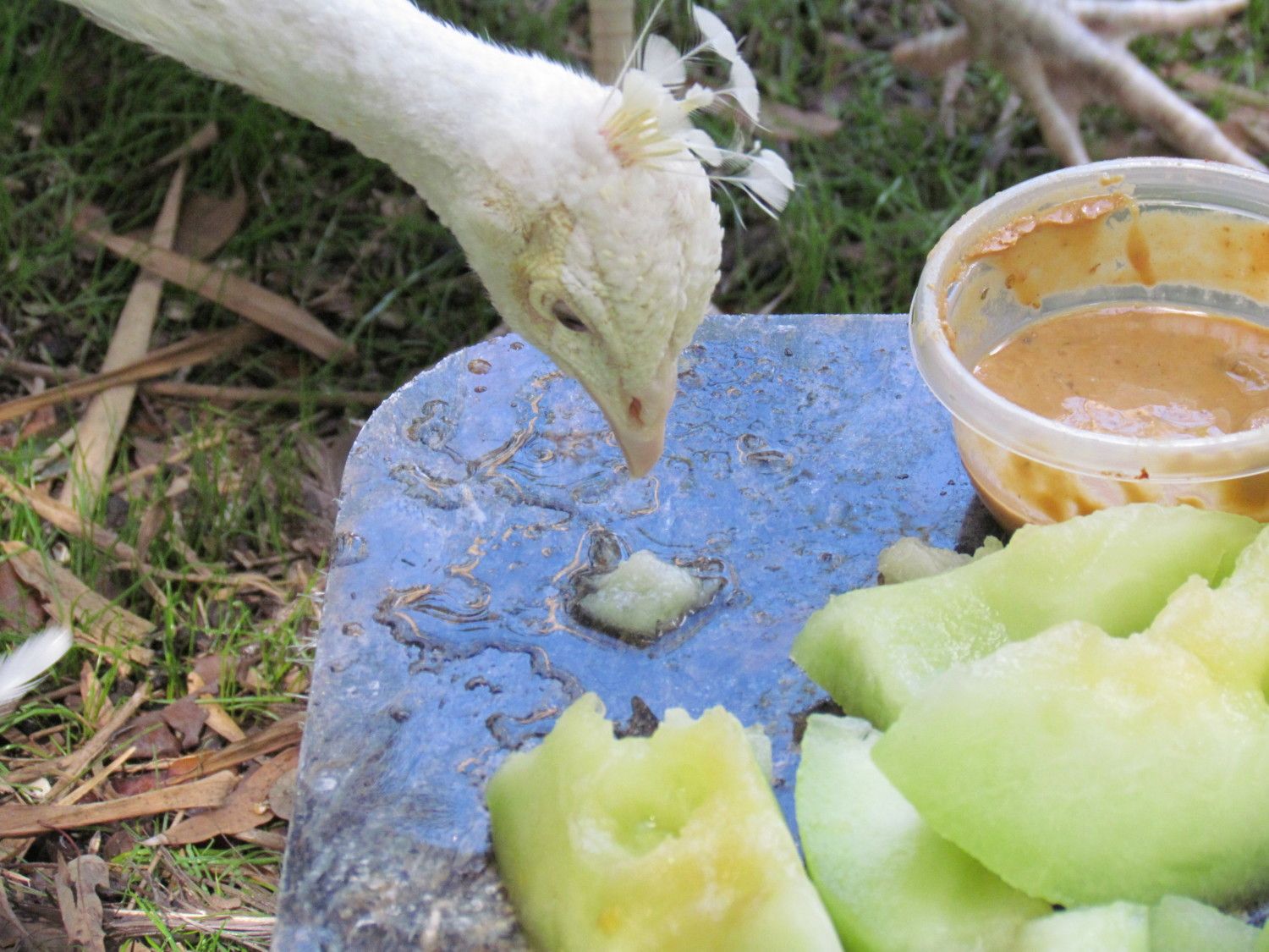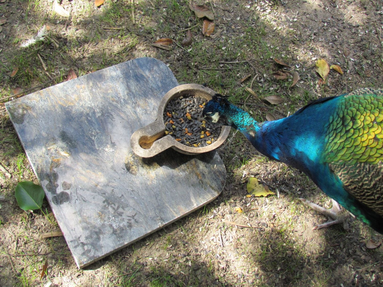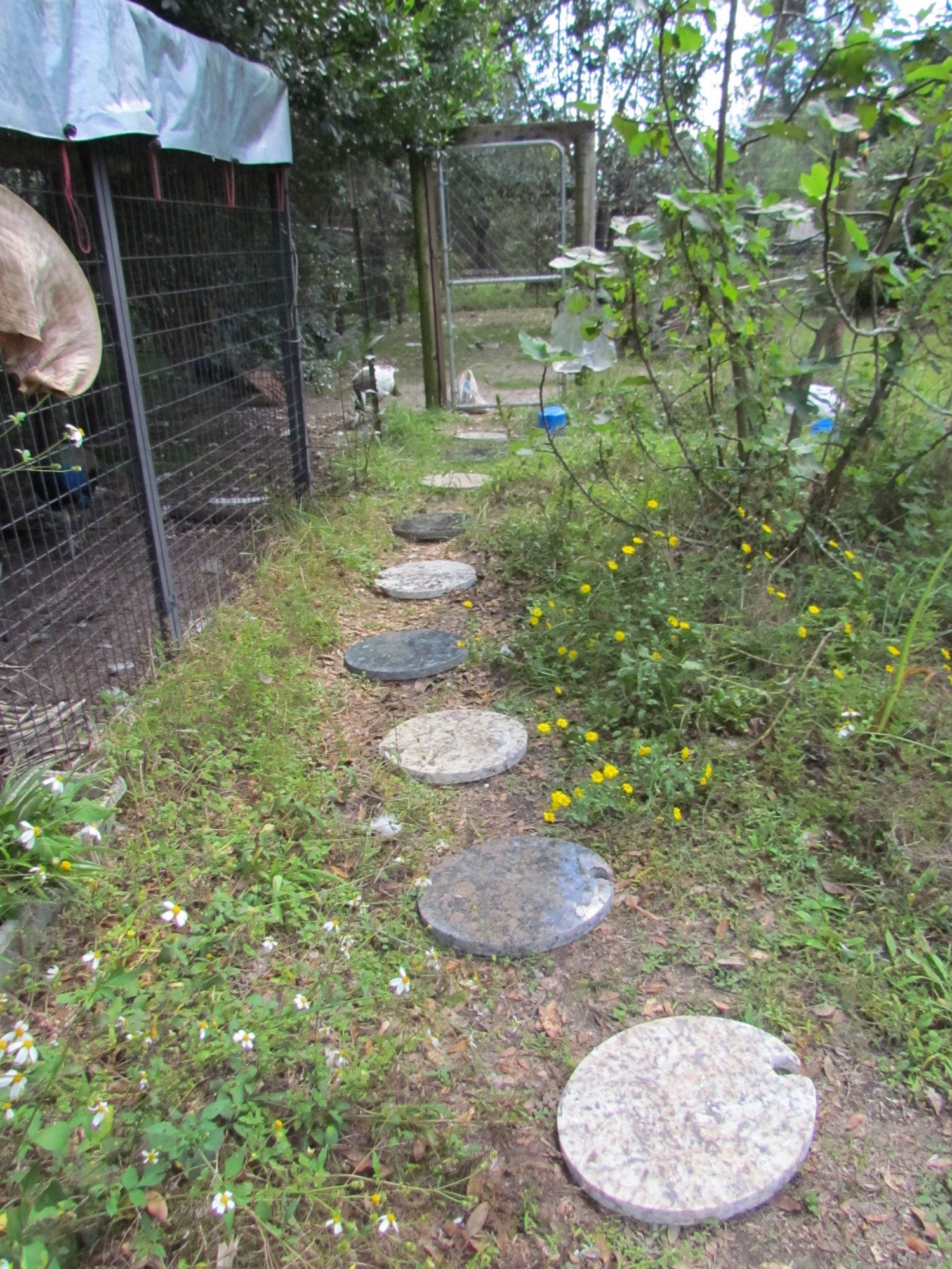 Anyways, I now have a granite stepping stone path leading to the pen door. I haven't put the granite in the ground yet. Some of the larger pieces I have placed inside of the pen. My peafowl now have their own mini granite countertop to eat off of. They are so fancy!![]()