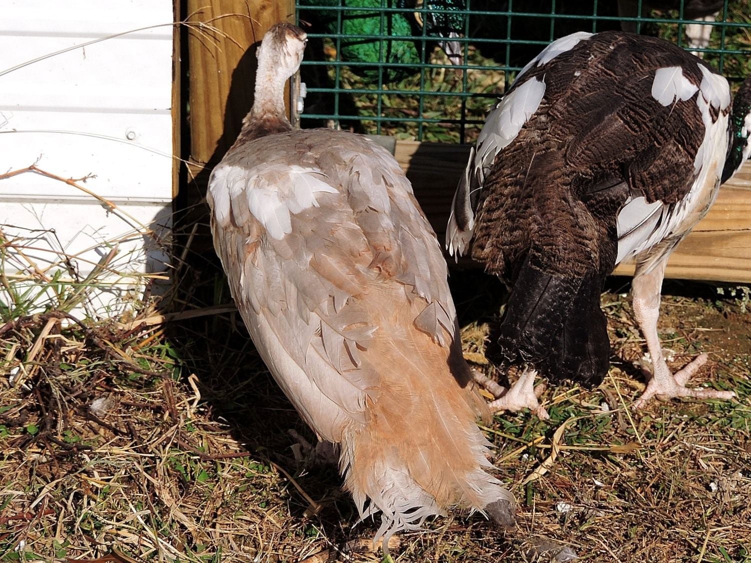 The Peach Pied hen is out of quarantine and doing well. Her tail is growing in very orange.