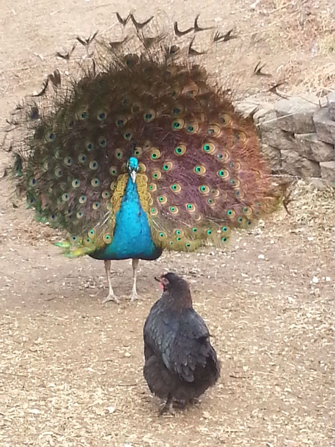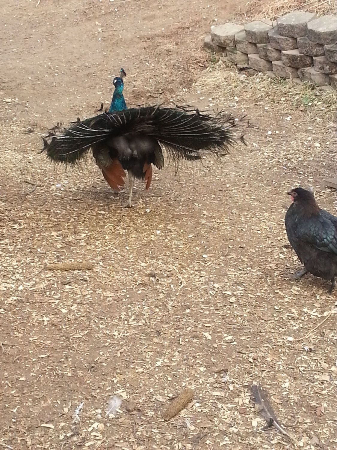 He seems to have one pullet that won't stop following him! Lol! She just doesn't get that it's not for her!