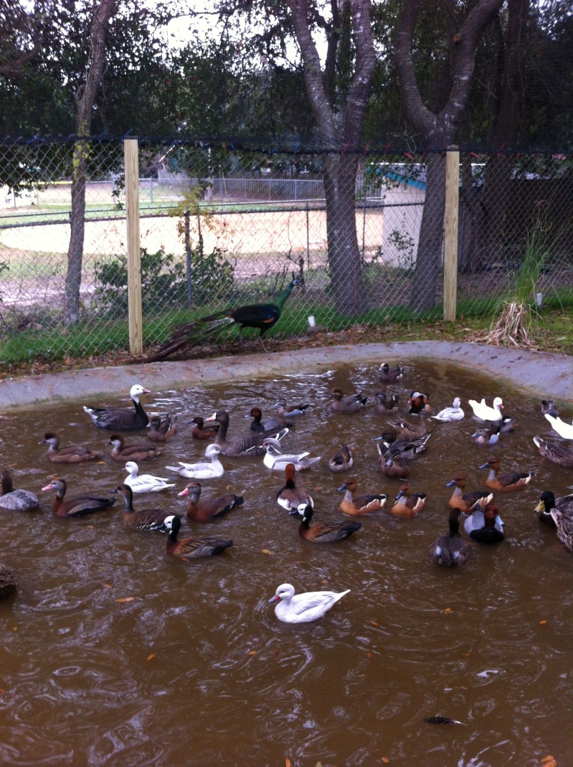 he has exotics tho domestics and exotics are wayyyy different domestics are 3x dirtier I had a shelduck in a 15x15 pen for about 1 month never even had to change his water and the grass never died never even had mud!