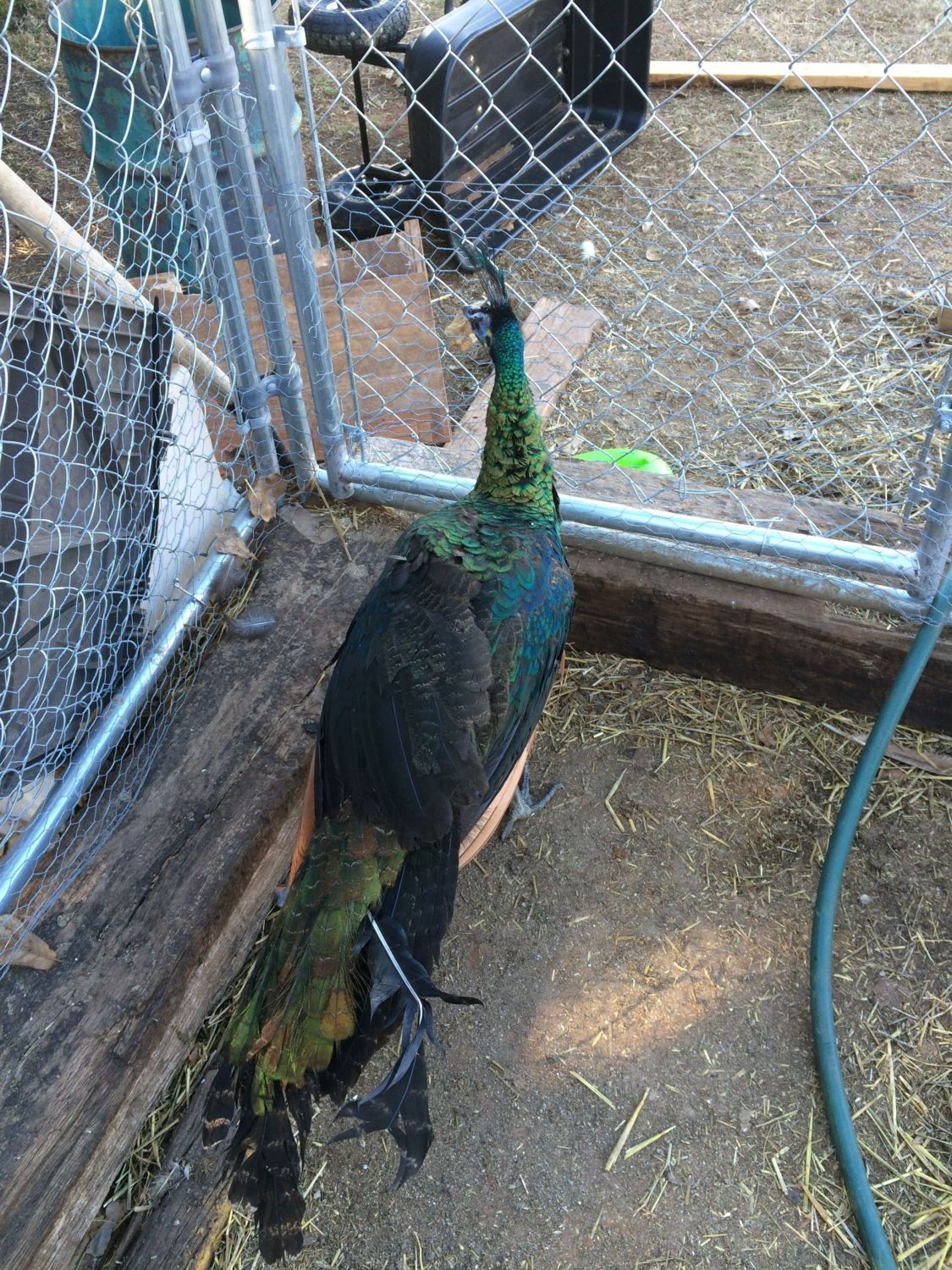 A few pictures from my phone...still don't have a computer to download pictures from my good camera:( My babies are getting big! My peacock was sure displaying for then today.