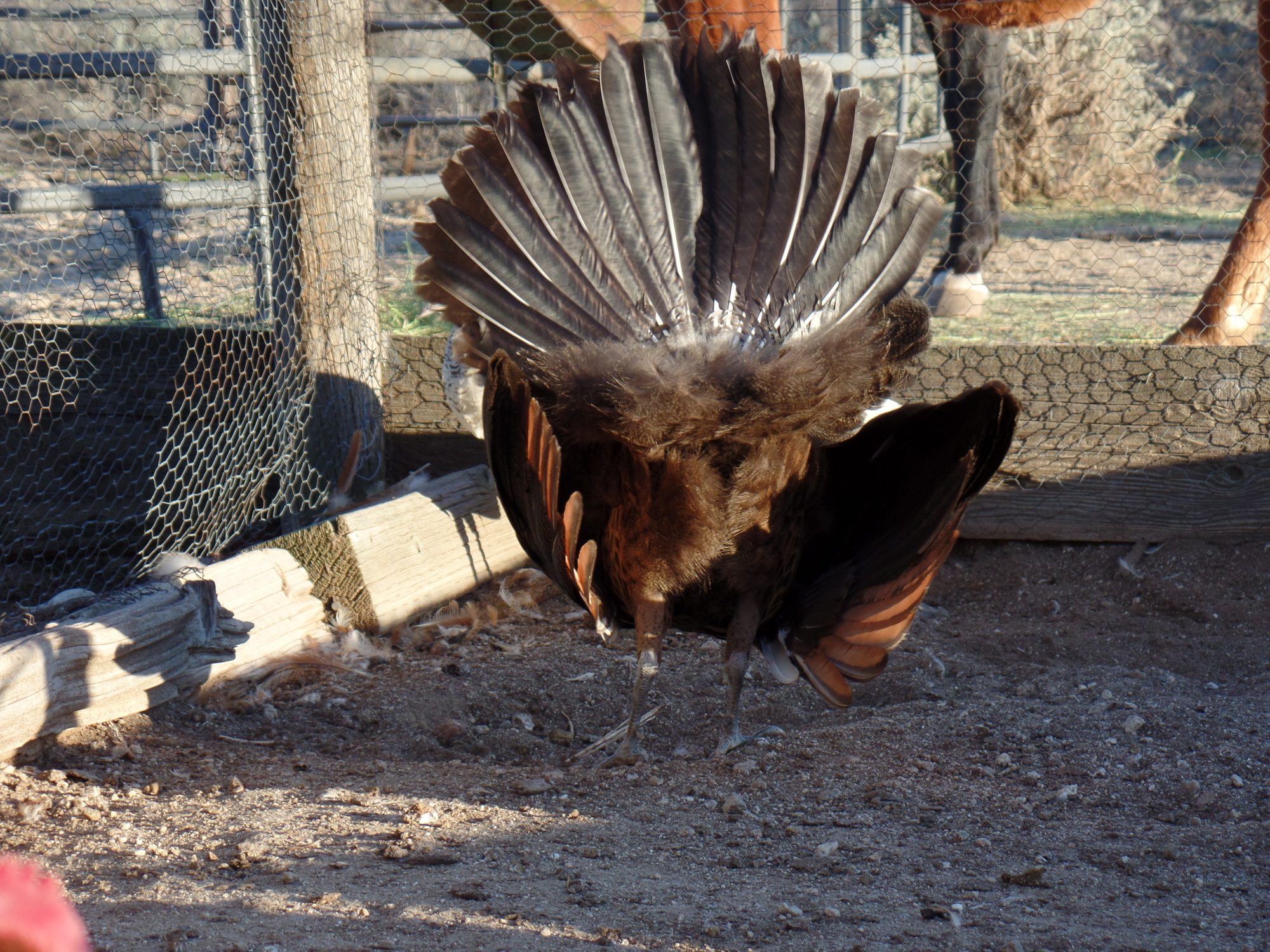 yes she is happy also.If that means he is happy, what does it mean when my one and only little girl "Sweet" does that too? She is so funny displaying and walking backwards, lol. I think she would like to walk forward but can not figure out how to do that and display at the same time. And sometimes she scratches the ground or shakes her tail the same time she is displaying. I get such a kick out of her.
