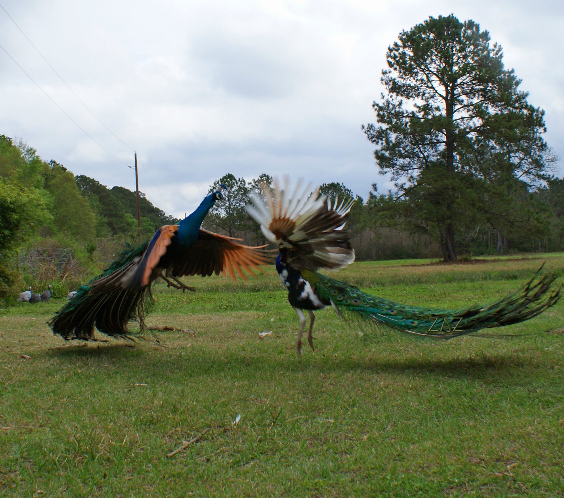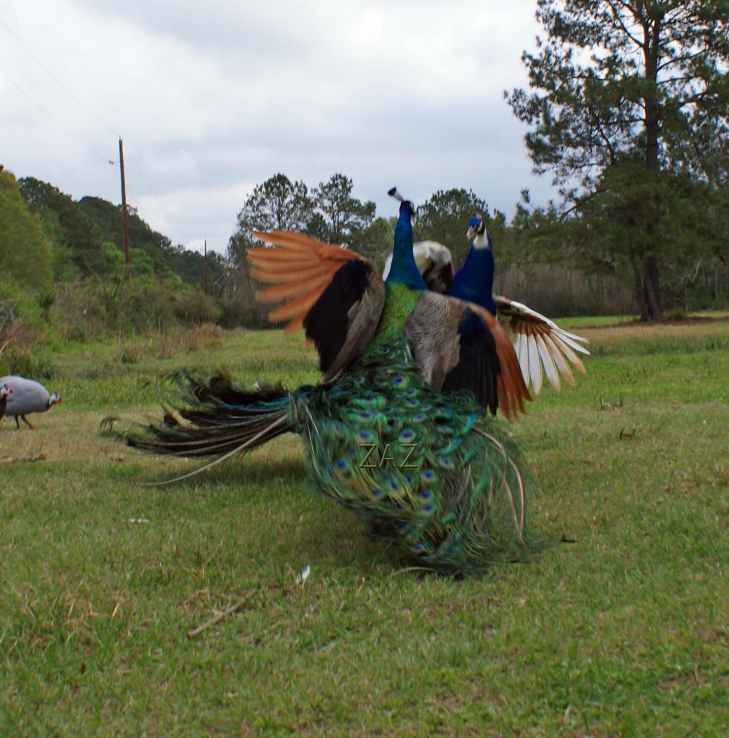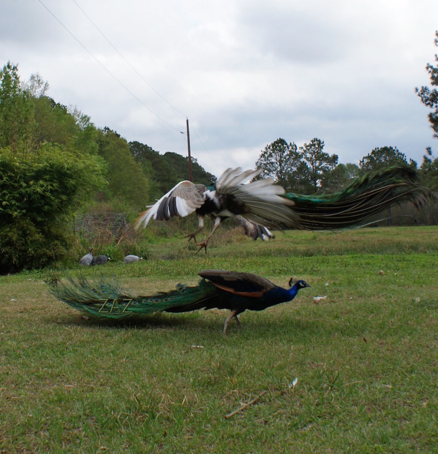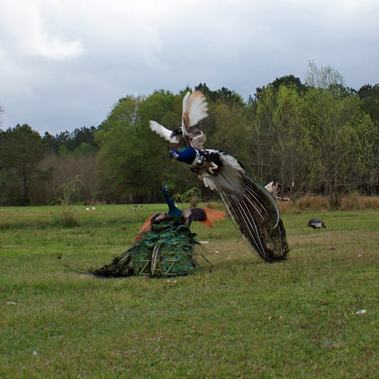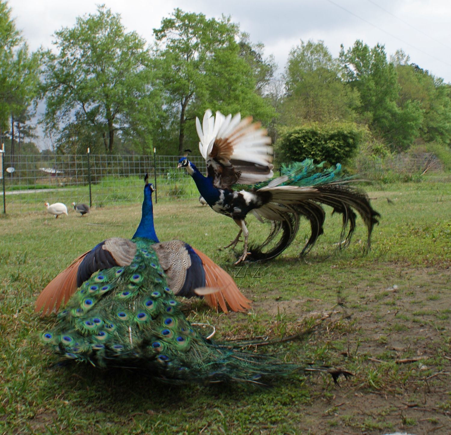 I am guessing Margaret is talking about Leggs Peafowl here: http://www.leggspeafowl.com/peafowlforsaleadults.htm