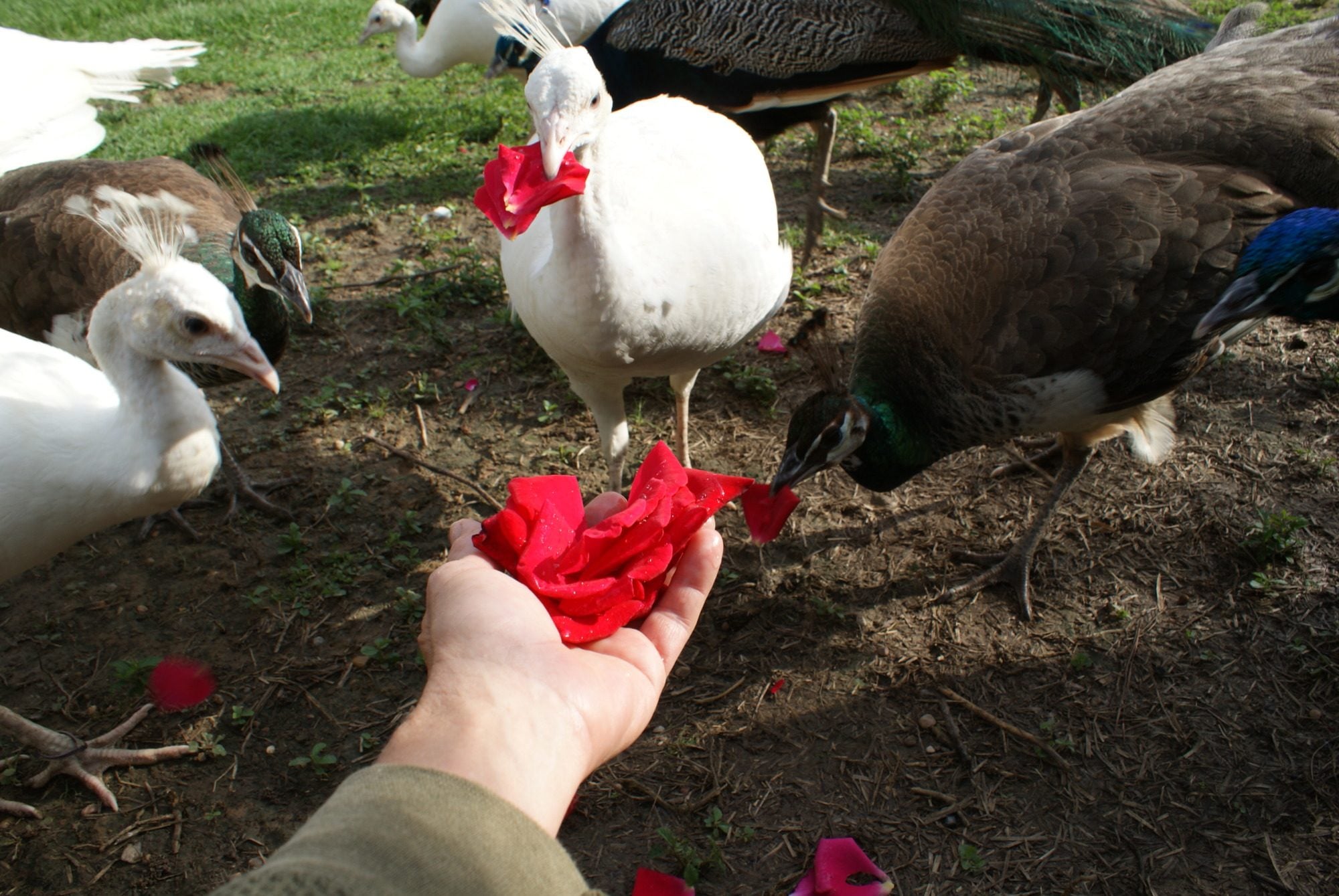 Mine never have and they eat rose petals all year longI wonder if the white peacock will turn pink and purple, like the Flamingos do because of their diet?![]()