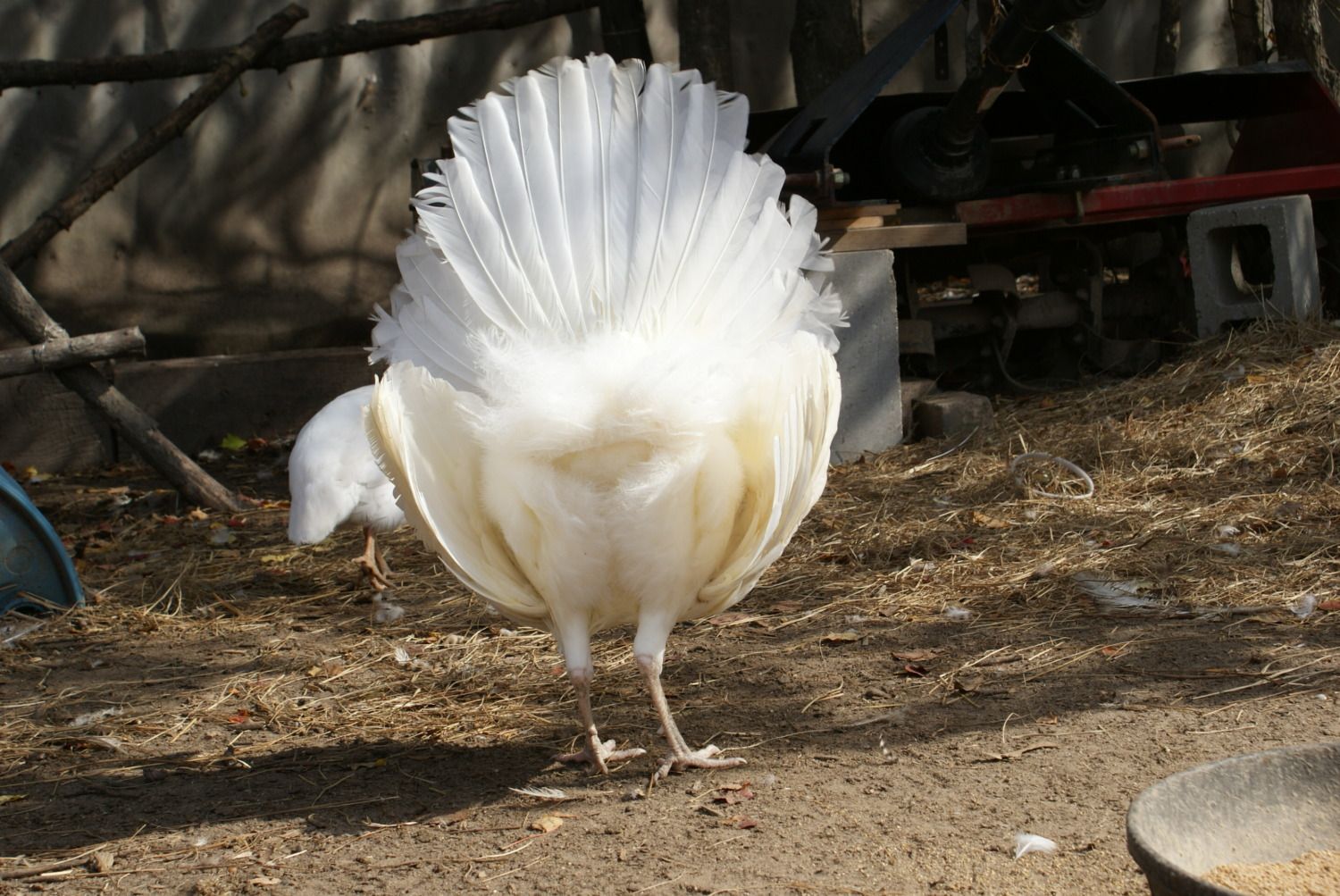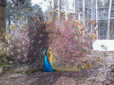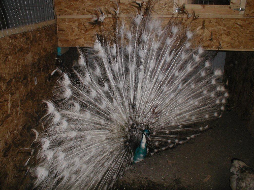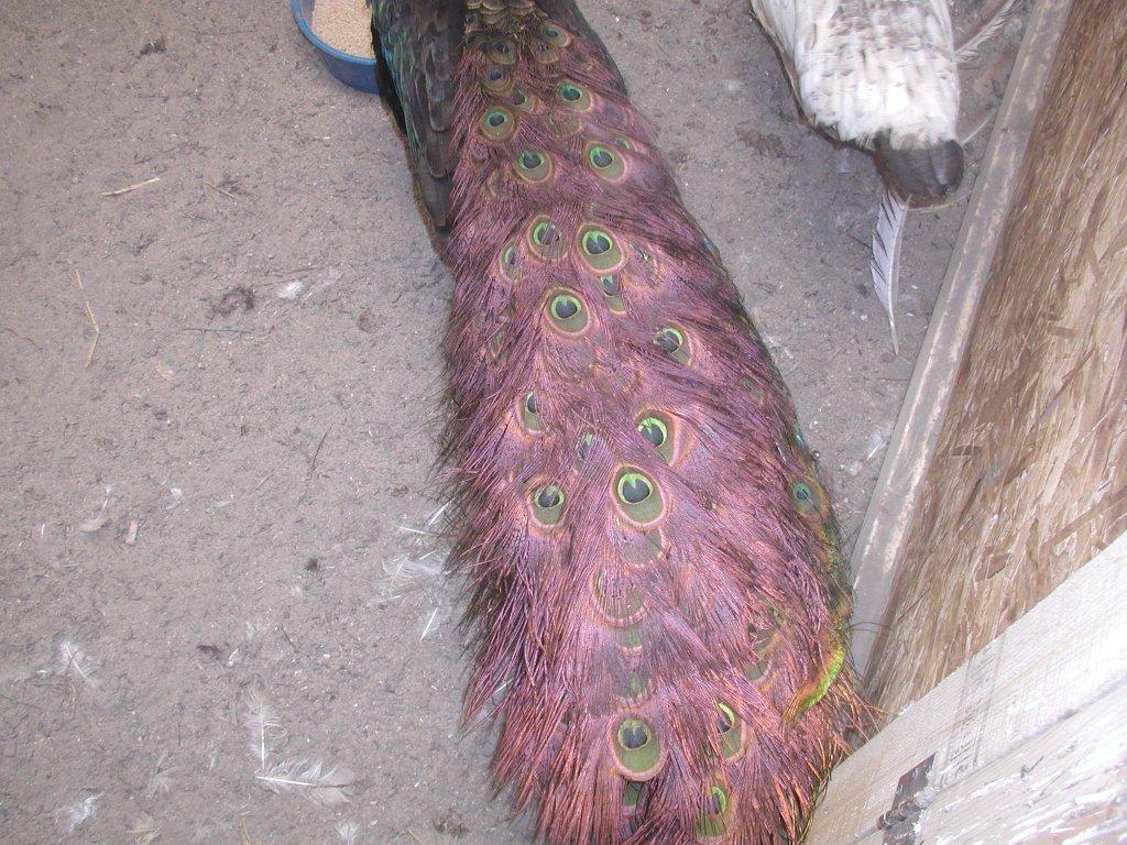 I have only seen him display facing me once, the other times he's been shy, peeked around his train at me to see if I was looking, then quickly turned around and faced the other way. Silly shy boy. And of course the one time he faced me I didn't have my camera out. Next nice day I will try to snap some updated pics of the gang and share them.