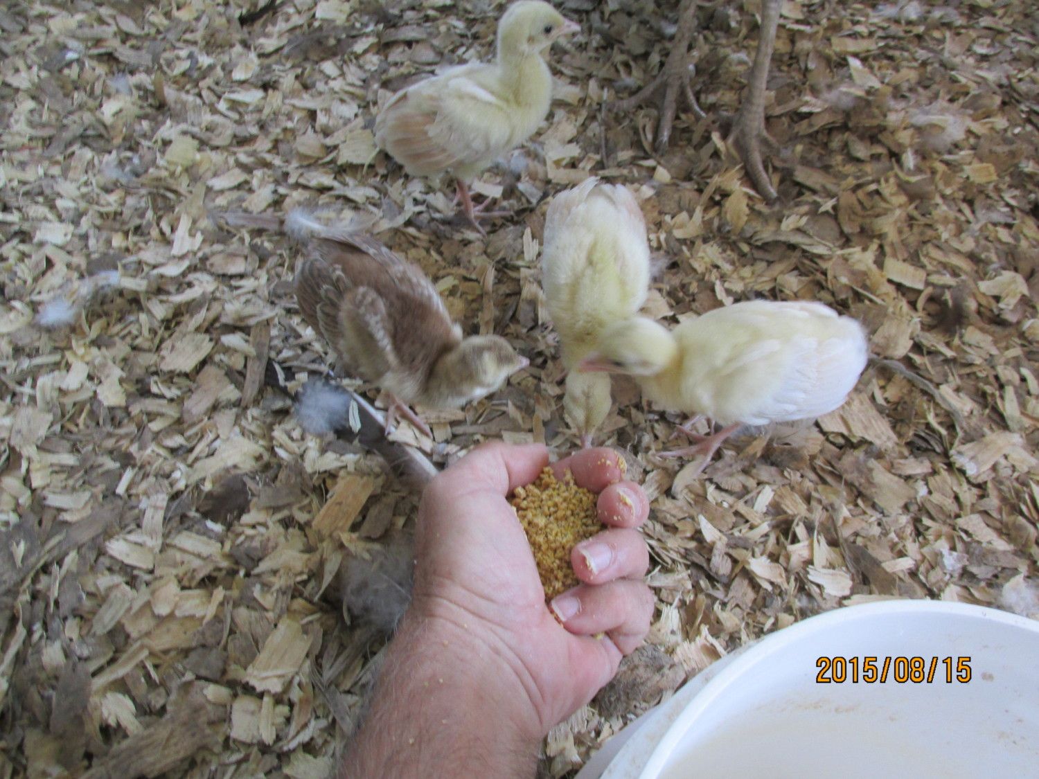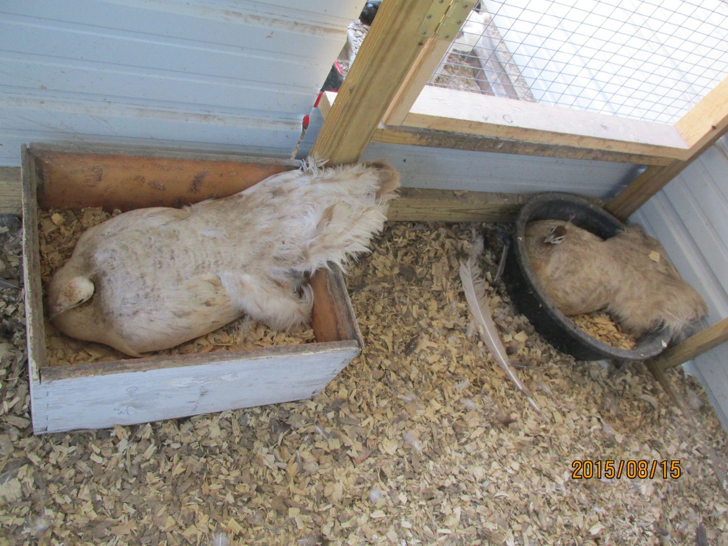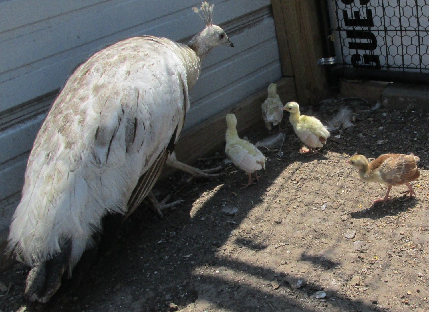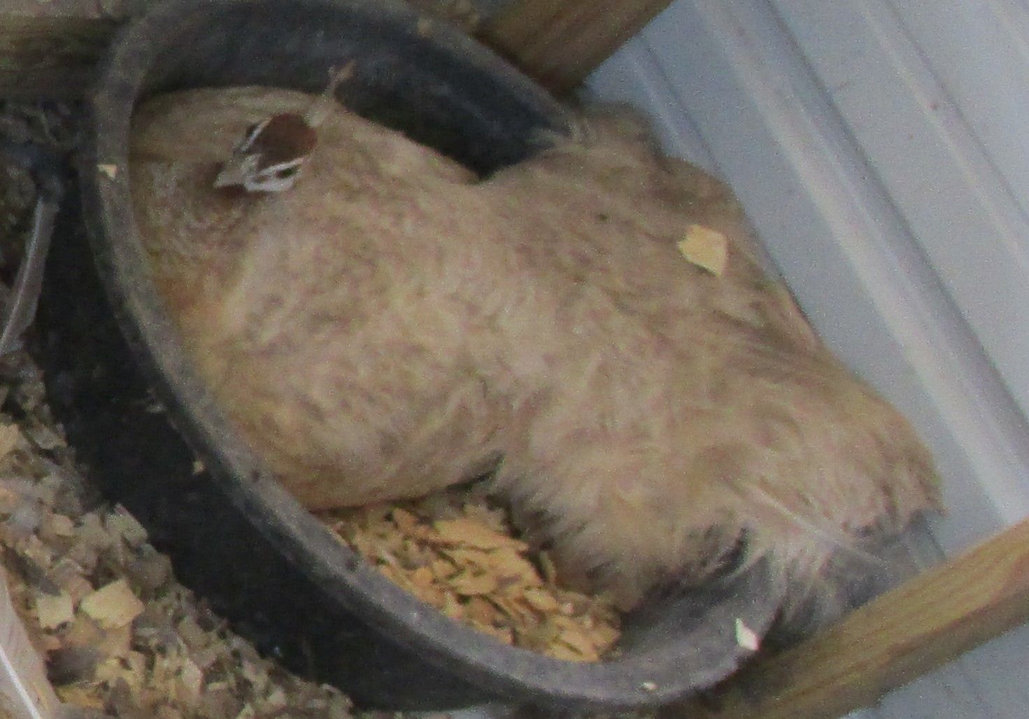 The hens on the left had at least four eggs piping today. One gal stood up so I could see the eggs, she had eight, I don't know how many the other one has. Two of the three hens in the Purple pen are sitting, the other has four chicks following her around. I'll get pics of them tomorrow.