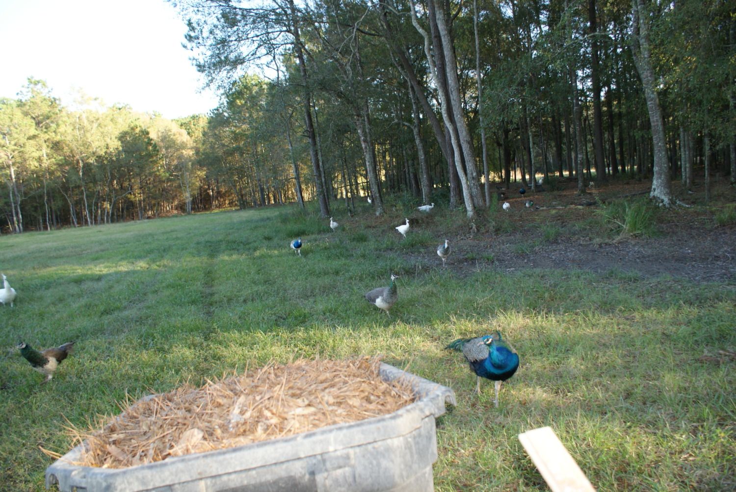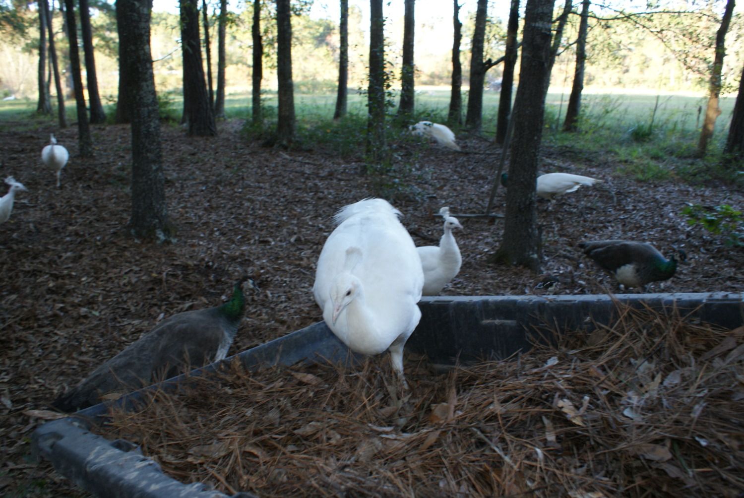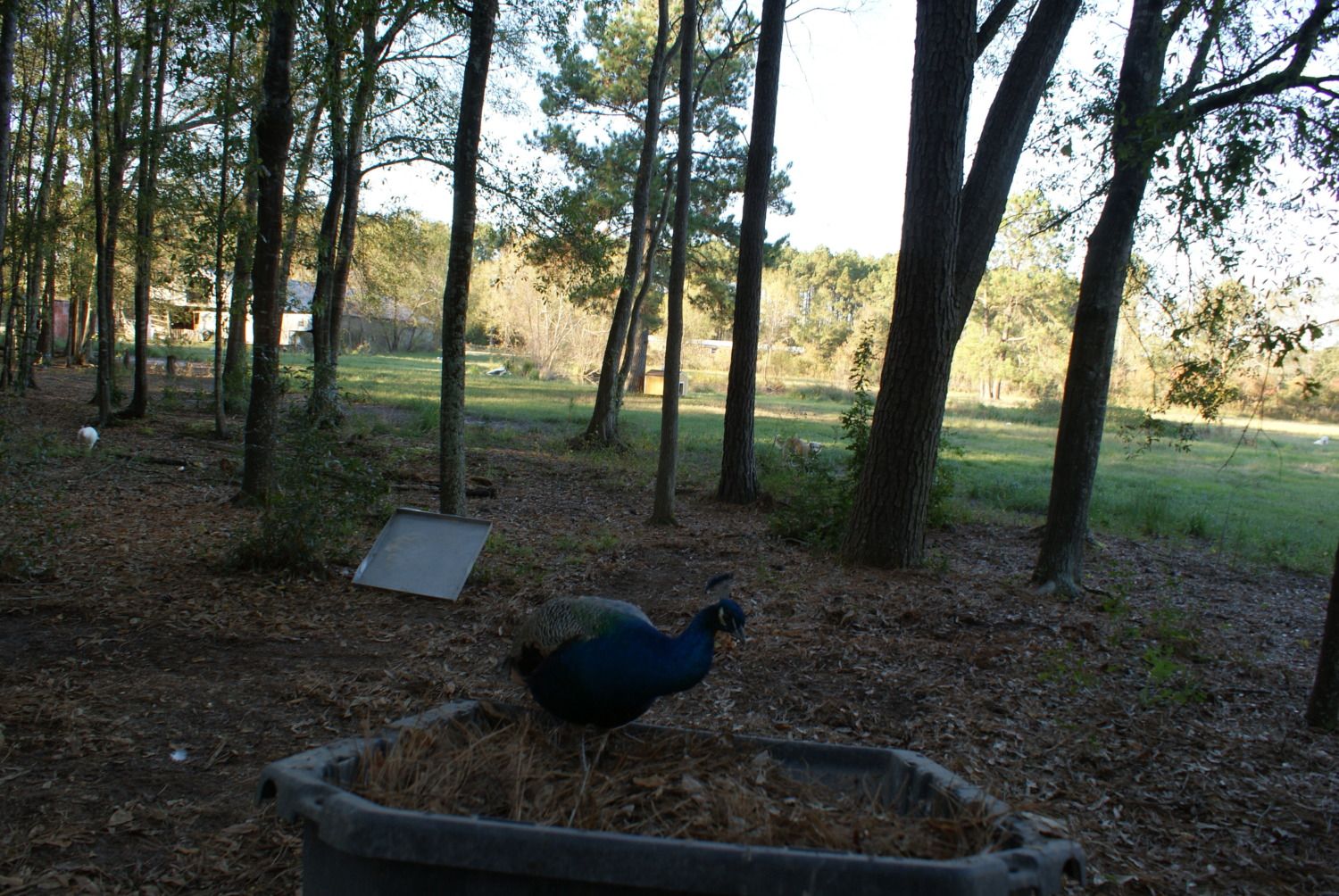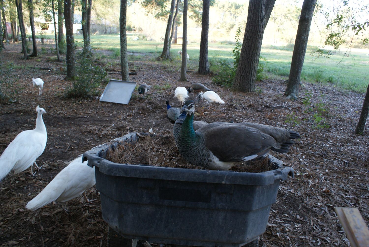 Silly peacock checking out an old peahens nest i made