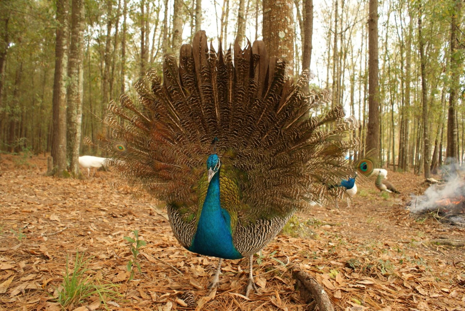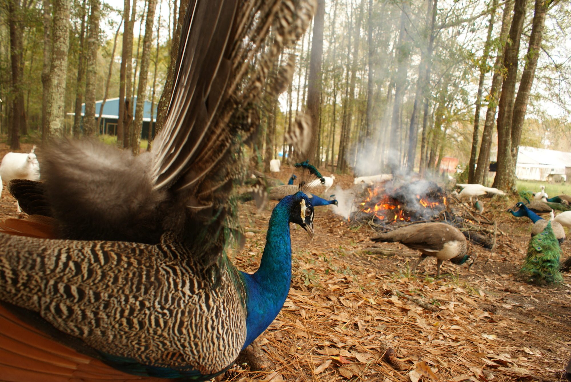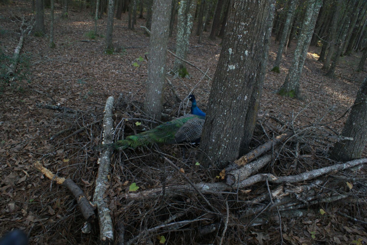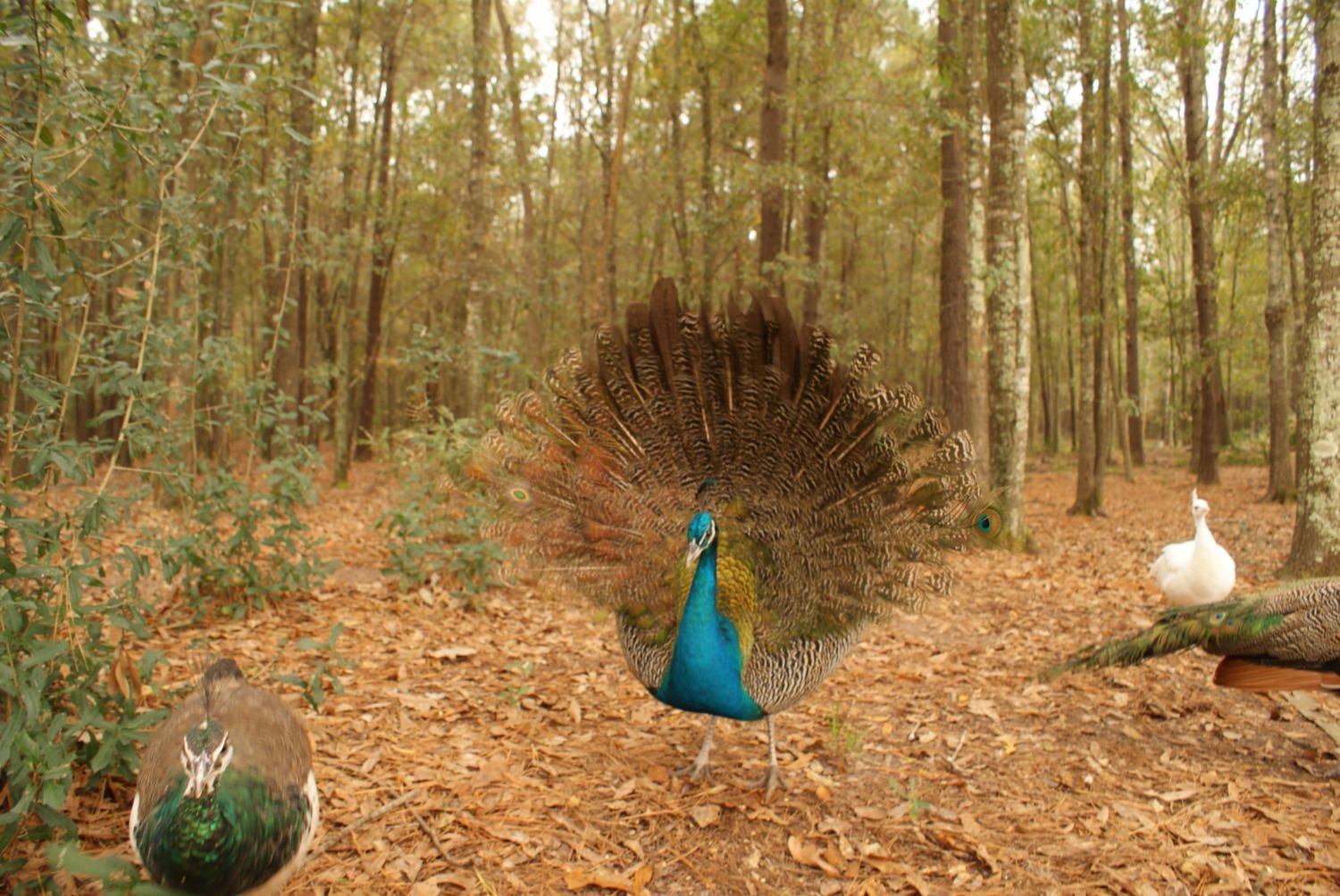 Silly peacock checking out an old peahens nest i made