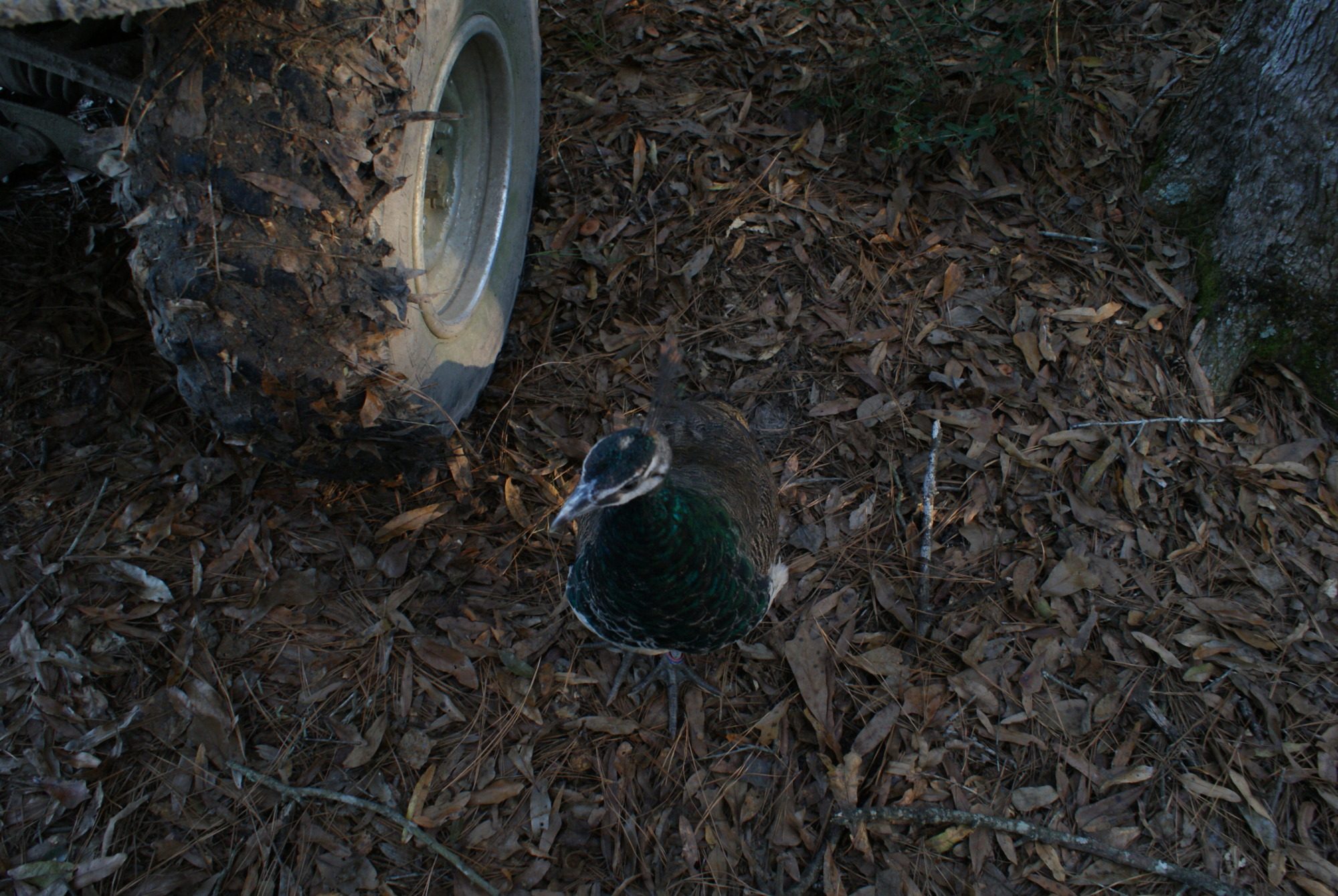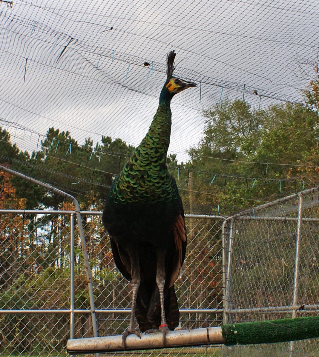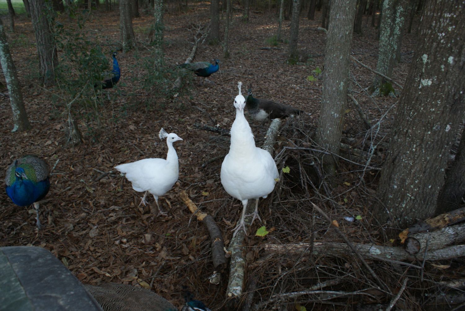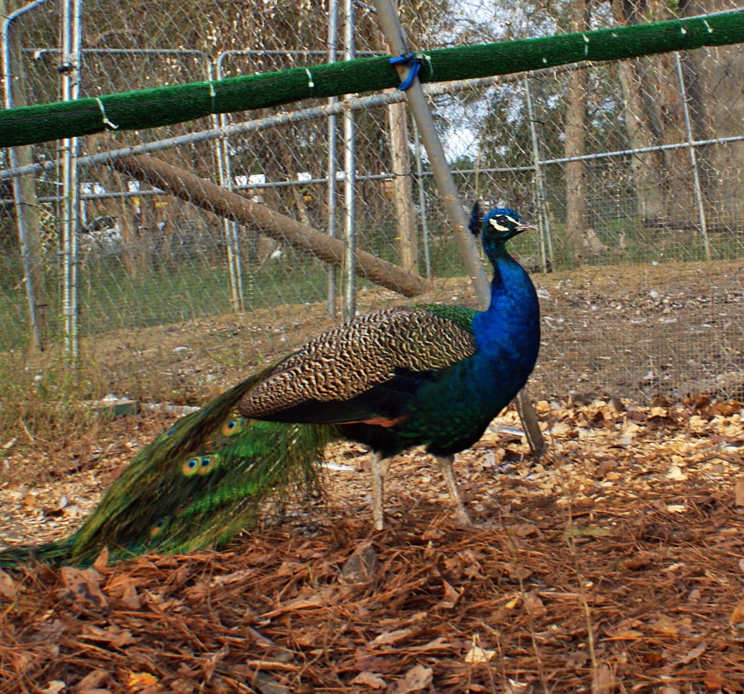 Silly peacock checking out an old peahens nest i made