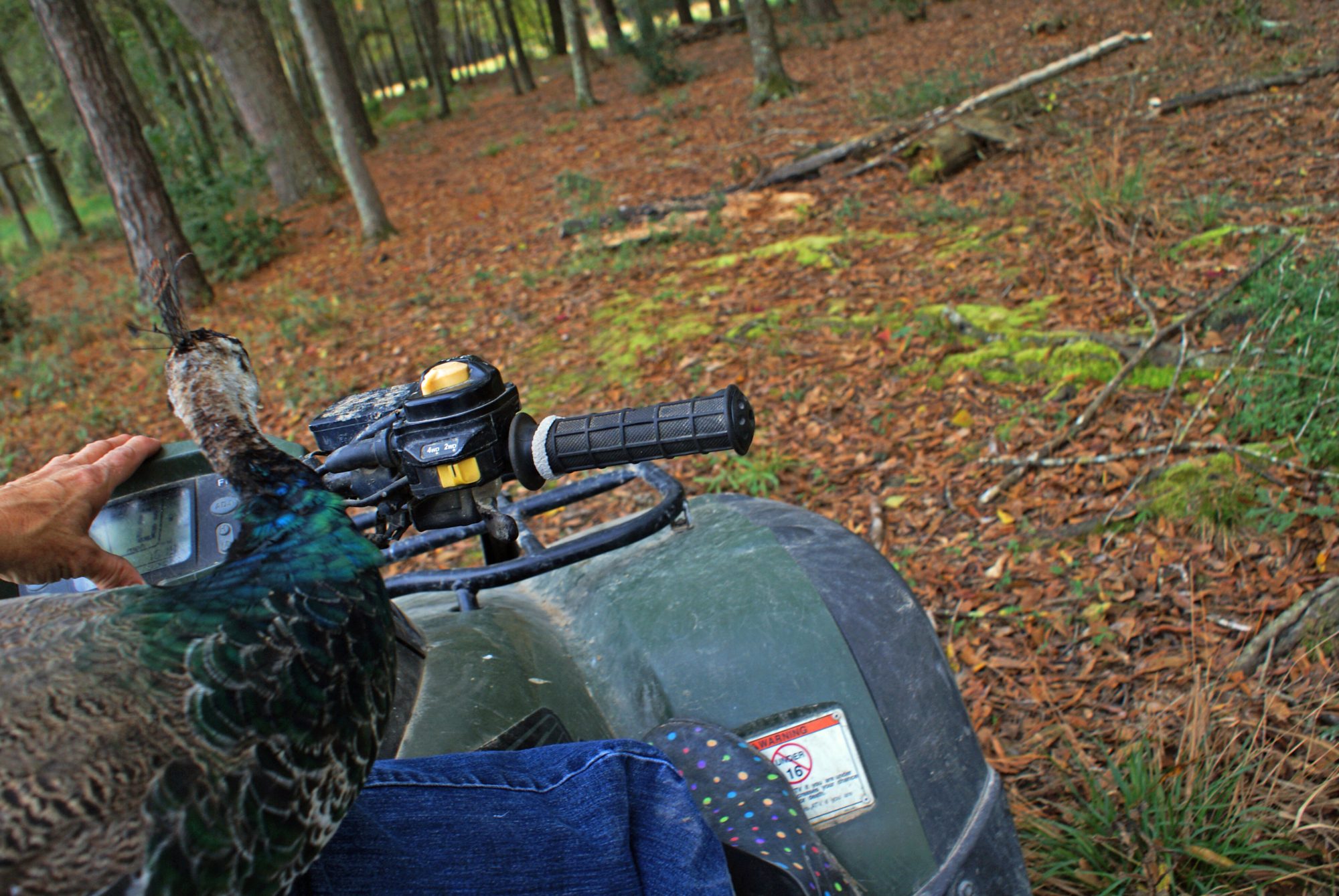 Hitching a ride back to the pen to lay down some leaves