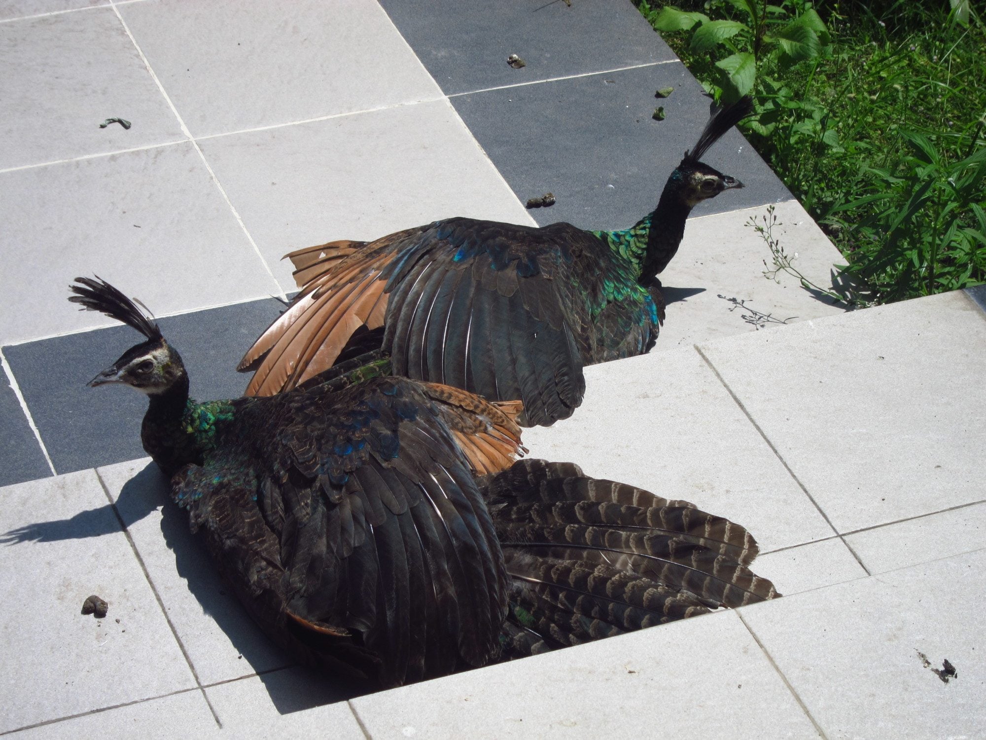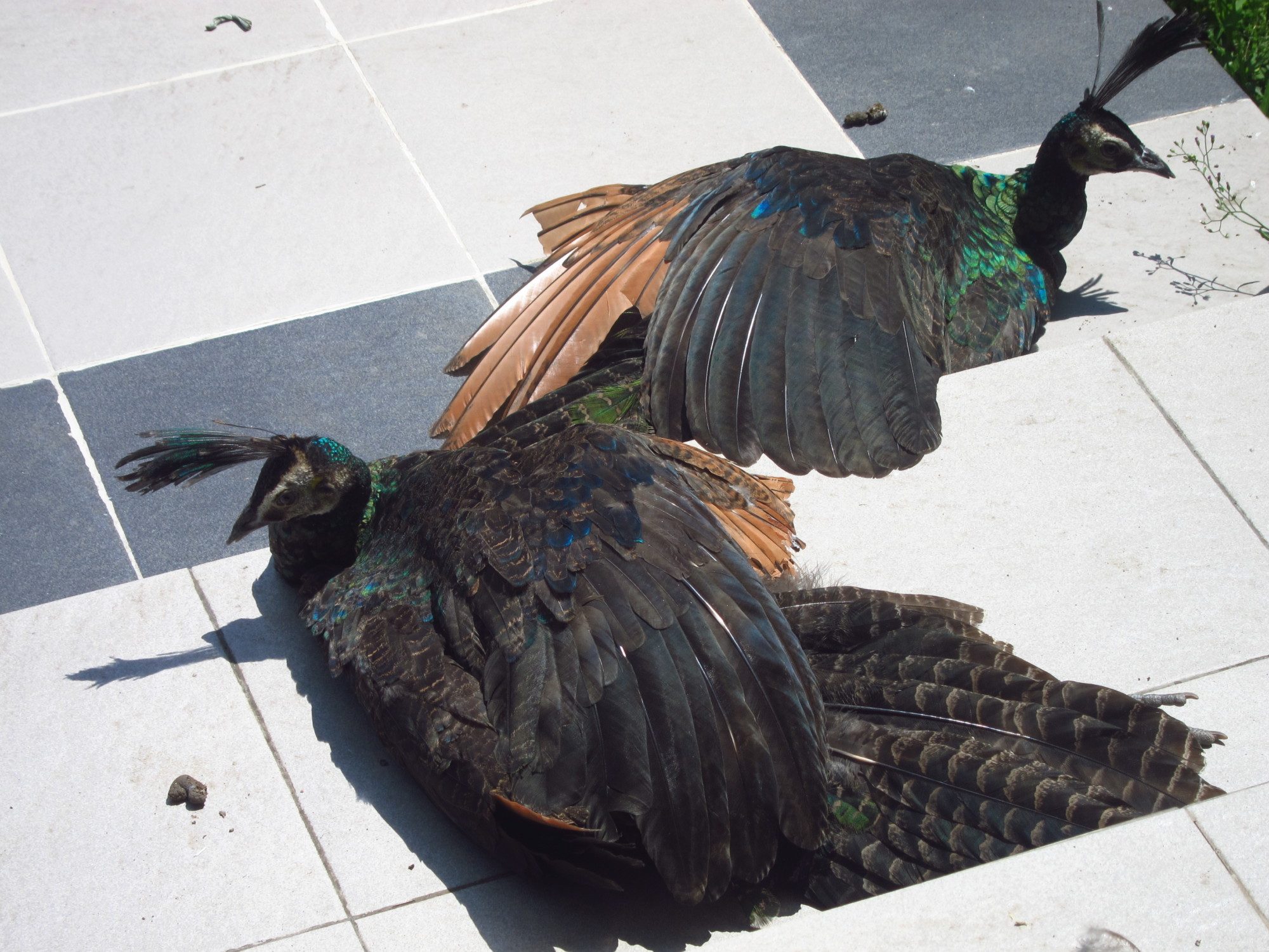 #2 I can't really tell because I can't see the small flight feather. I can't be sure but I don't think the wing barring really helps determine the sex when it comes to green peafowl.