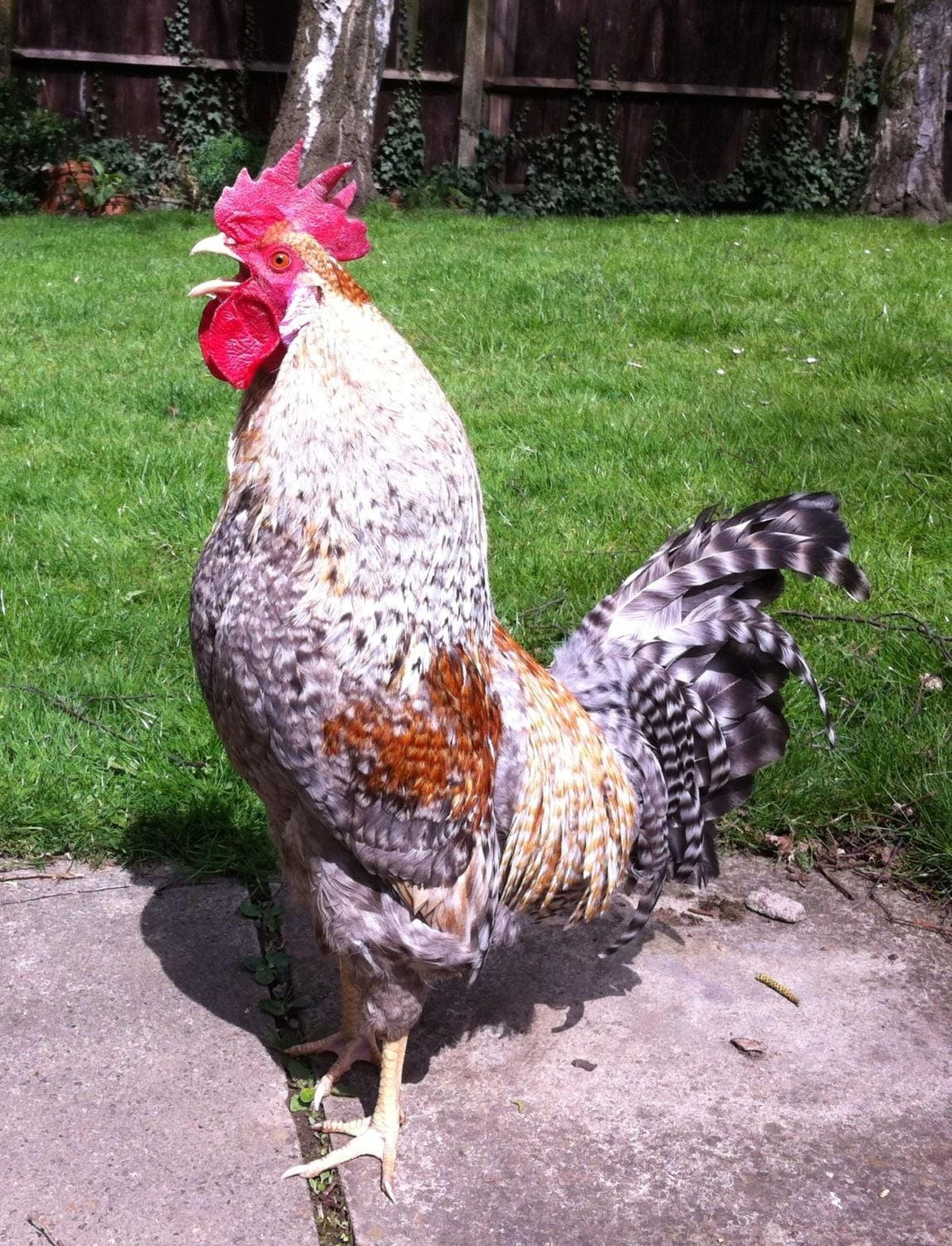 This is my Crested Cream Legbar. I hatched 8 chicks from him 3 weeks ago and they are doing great!