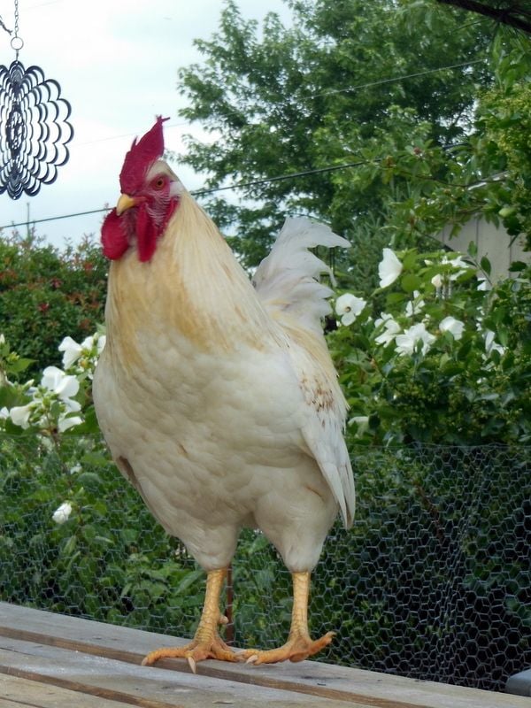One of my gf's roosters. "Monroe" Hatchery Golden Laced Wyandotte