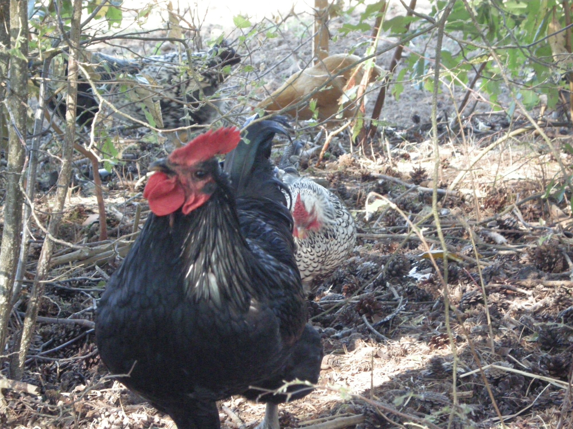 This is my boy "Holly" after Evander Hollyfield since he lost a piece of his comb in a fight. 6 month old speckled sussex.