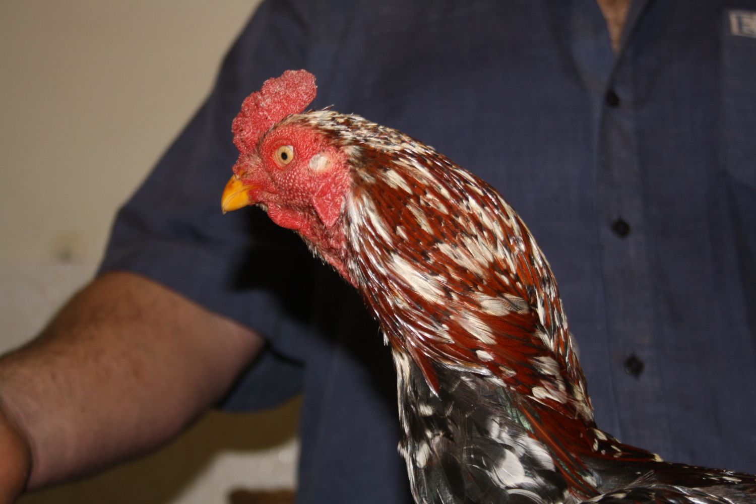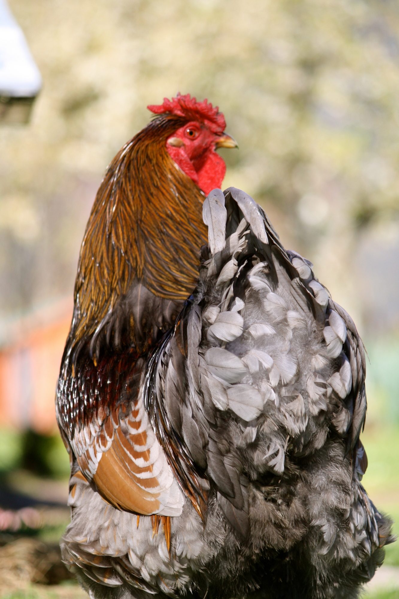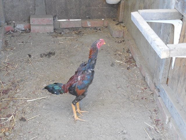 My ameracauna rooster (picture from last fall),he's amazing and loves his hens and will let them ''groom'' him,he will call them for food,protect them, and even sit in the nestbox every now and again to comfort the hens while they lay an egg,and loves them with all his heart he's awesome! I love him.