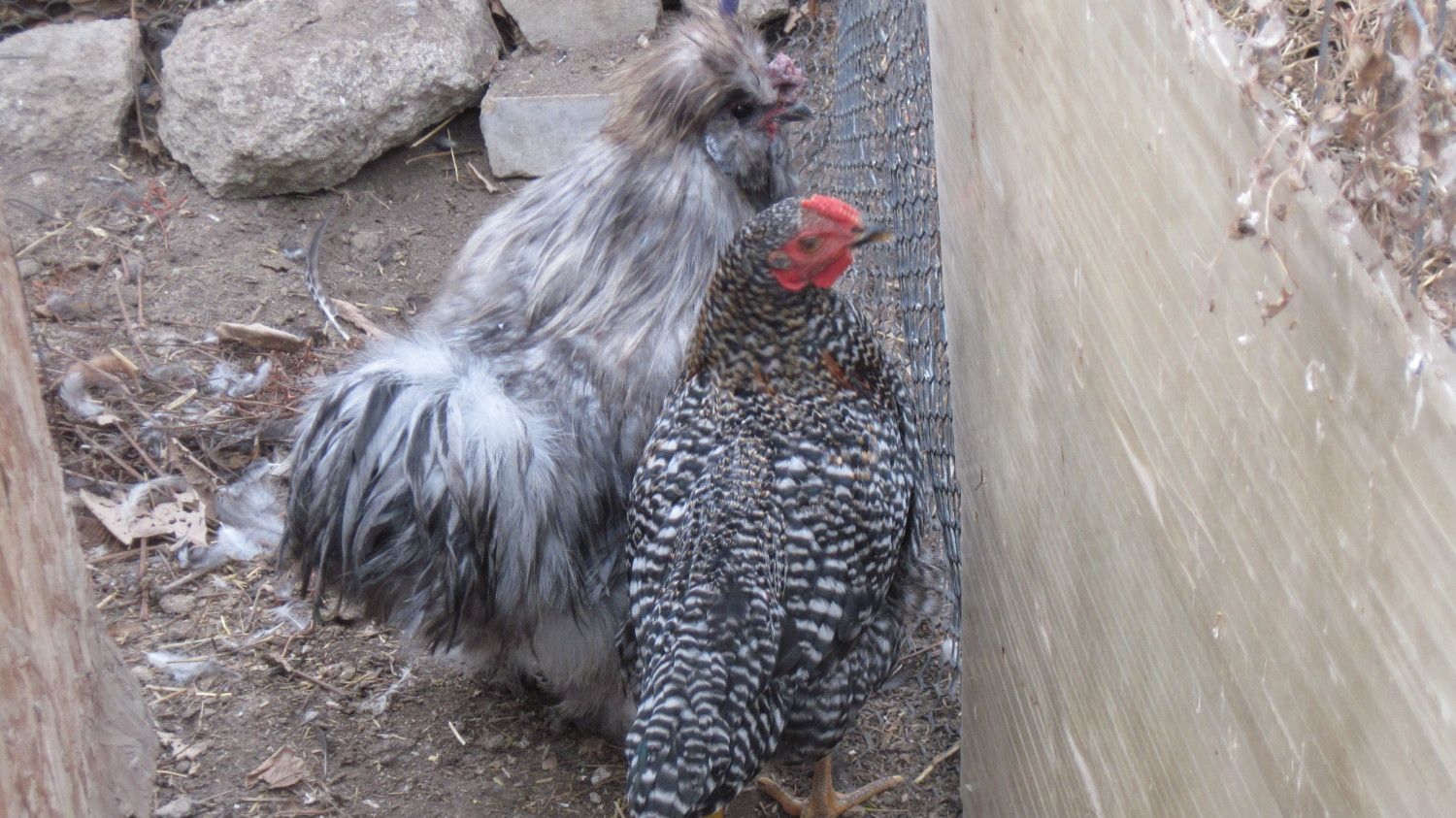 Dec 12, 2013 #1,762 themadchicken Songster 7 Years Joined Feb 2, 2012 Messages 1,159 Reaction score 82 Points 163 Location Lehi Utah Here is Rusty my bantam RIR. This is Ratchet my sons splash Silkie. And some pictures of random roosters i have had to rehome. A BSL hiding by Ratchet.