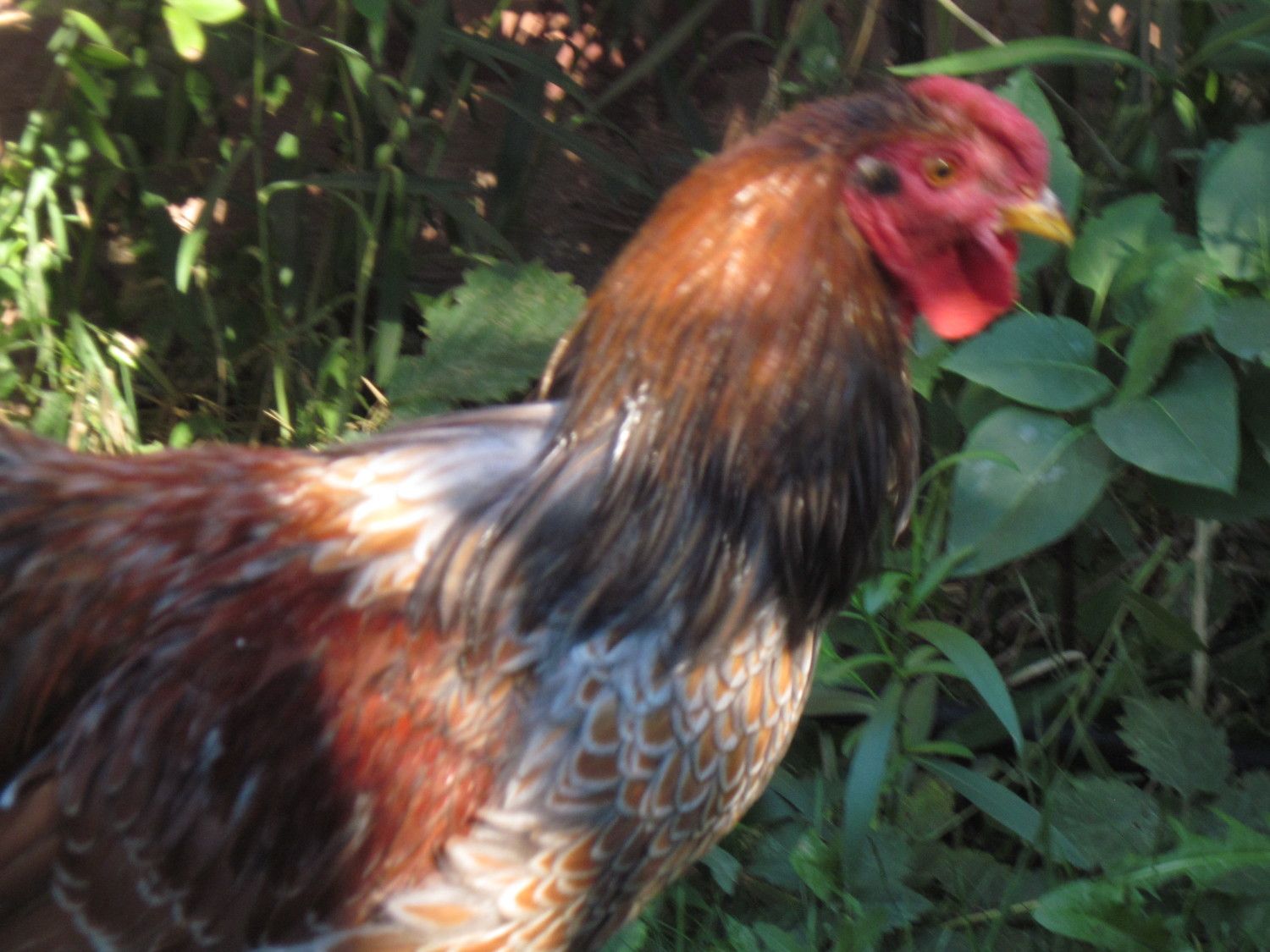 Here is Rusty my bantam RIR. This is Ratchet my sons splash Silkie. And some pictures of random roosters i have had to rehome. A BSL hiding by Ratchet.
