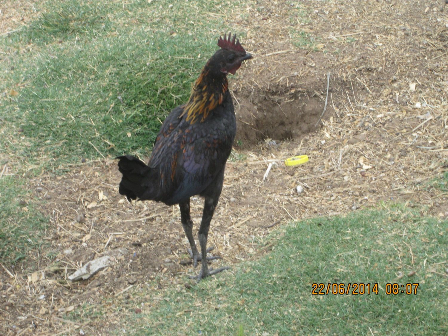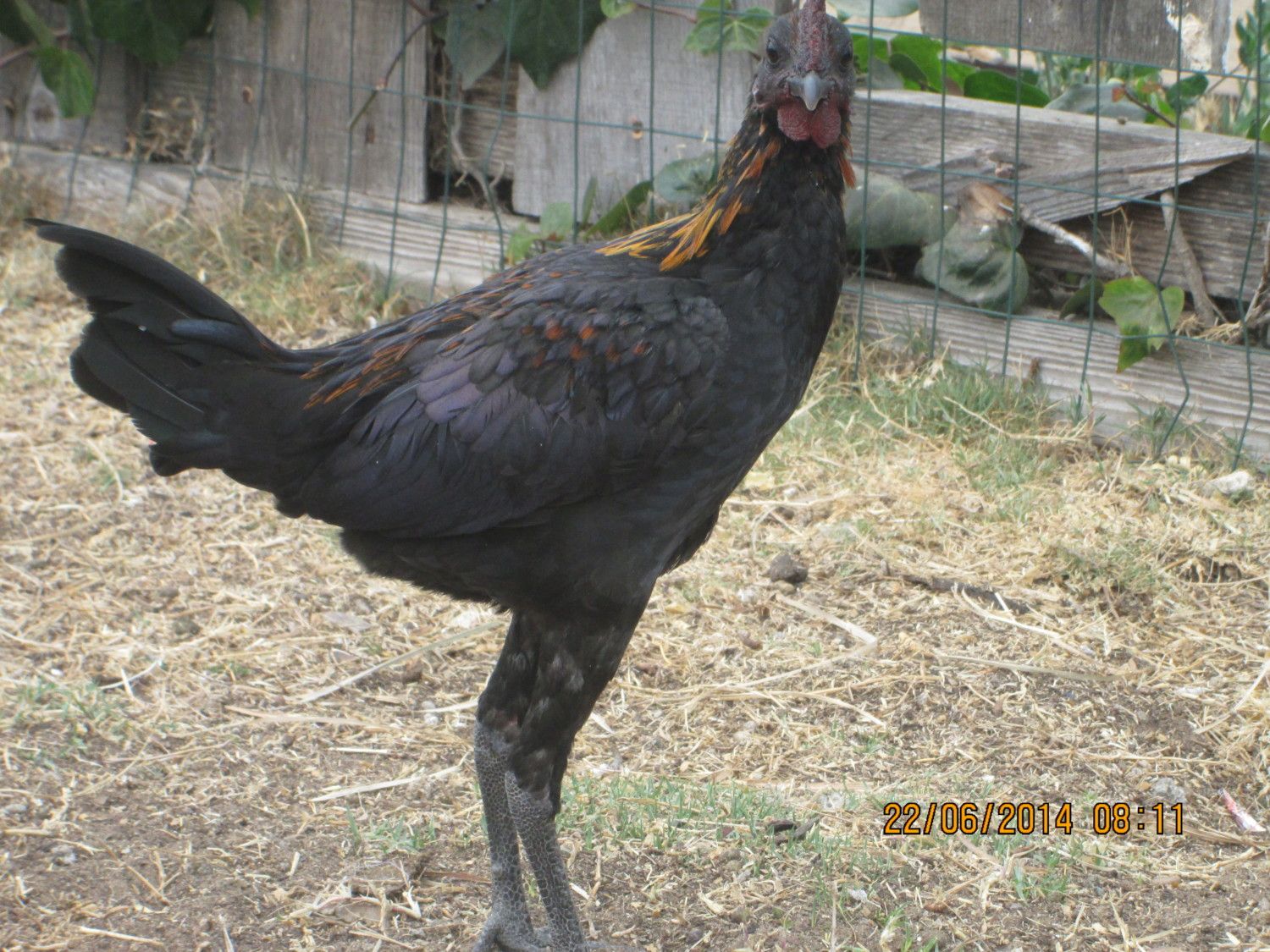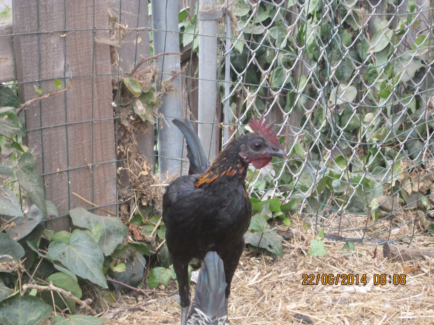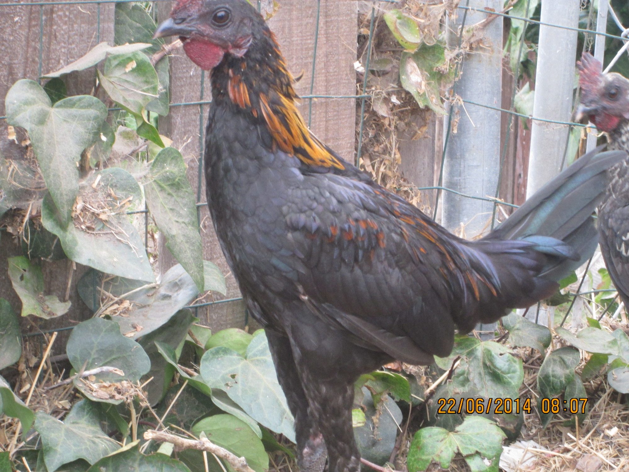 My genetic hackle roo, (aka fly tie) showing off.