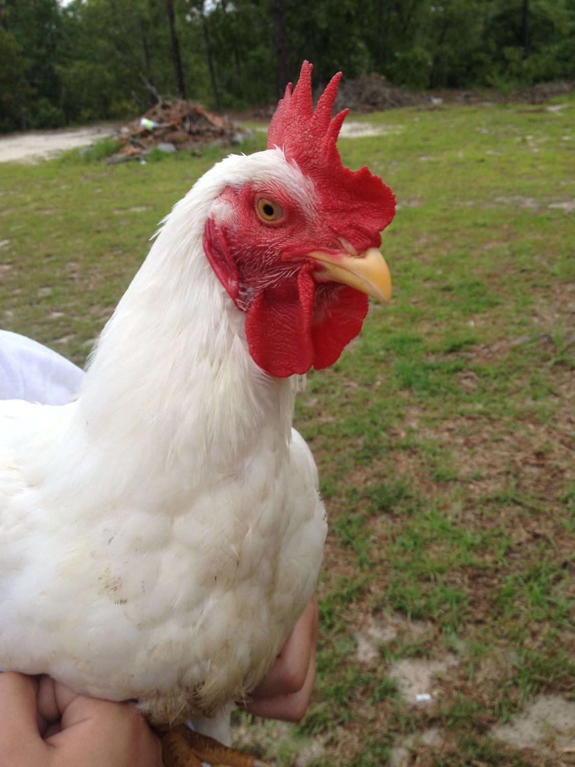 This is our CornishX Rooster Crazy. He is 3 months old and a sweet boy, he gave us his first crow this morning at 6:30am, perfect timing. We are going to keep him around to see if we can hatch some of his chicks. He was the slimmest and leanest roo we had out of 5 and the kids just love him.