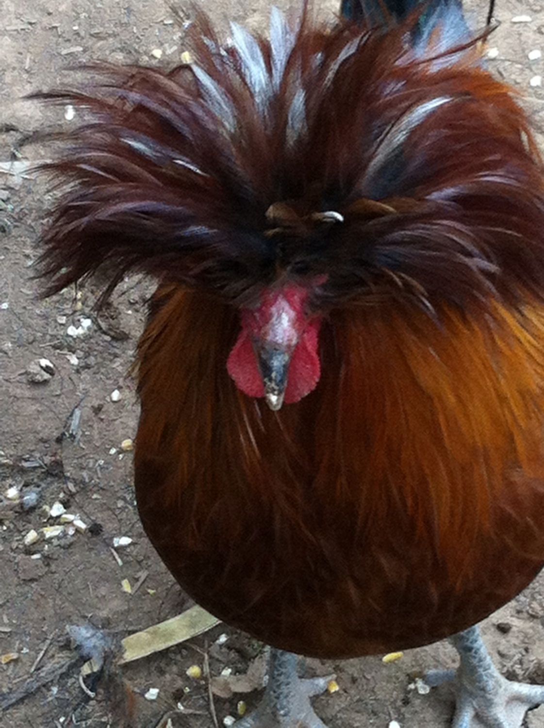 My polish rooster "sunset" he is almost 4 months old. I just love how good lookin he is.