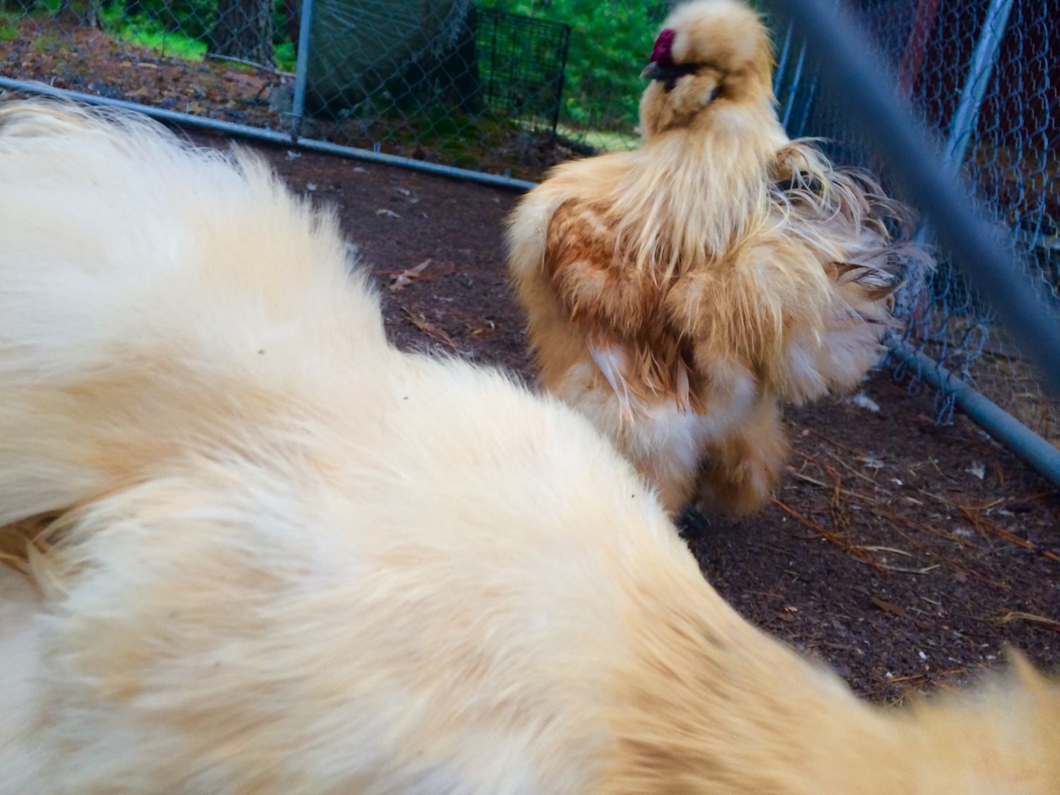 Sure i can take more pictures of him. Hes a chick I hatched from a bunch of fertile bantam eggs i bought at auction with amazing results. Im not sure what his mixtures are but hes a frizzle with some silkie in him and he doesn't normally carry his wings so low but he was showing off. Hes a very handsome mutt and Im hoping foe neat babies out of him![]()