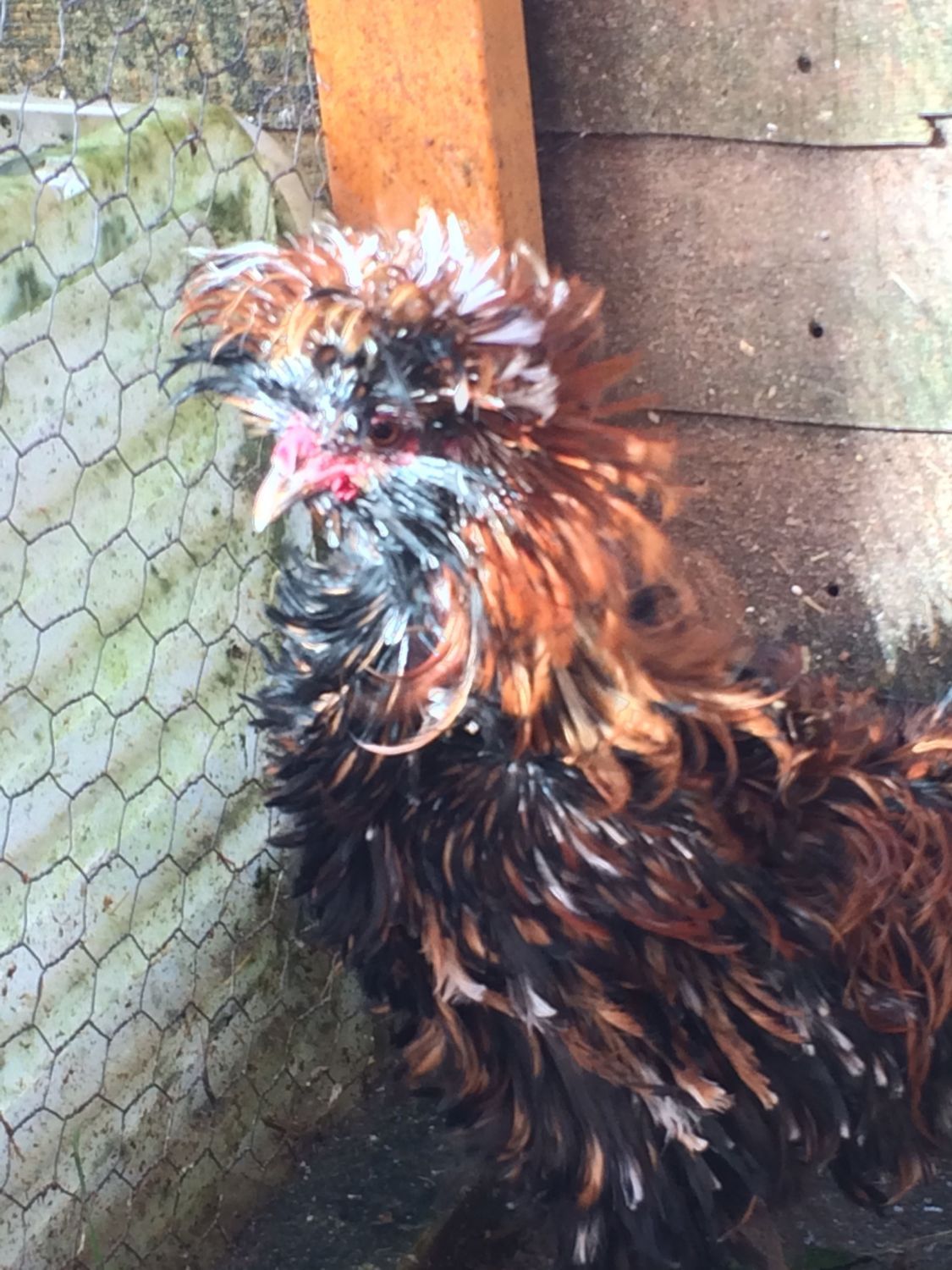 Don't laugh! This is fritz my double frizzle cockerel. He's a bit more feathery now and has gorgeous curls!