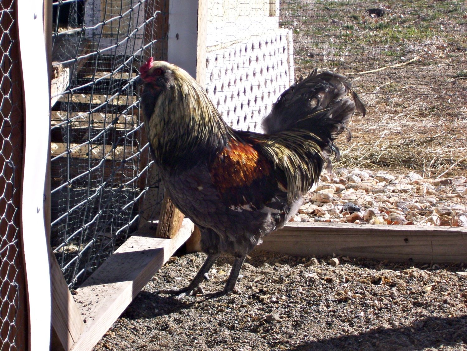 This is Valentino our new Roo we got Valentine's Day from a neighbor. Not a good image, but he is the most gorgeous and sweet natured EE/Americana rooster! I hope he starts doing his job soon, I'd like some chicks.