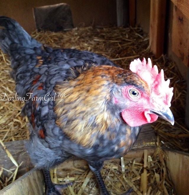 The girls above and a few roosters eating an old pumpkin from Fall 2014. These are the parents of our newest birds, who we referenced when we first became members. Have a good rooster pick of our 'Elvis' below, he is such a ham....