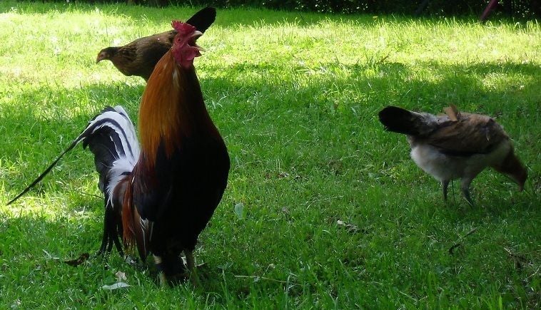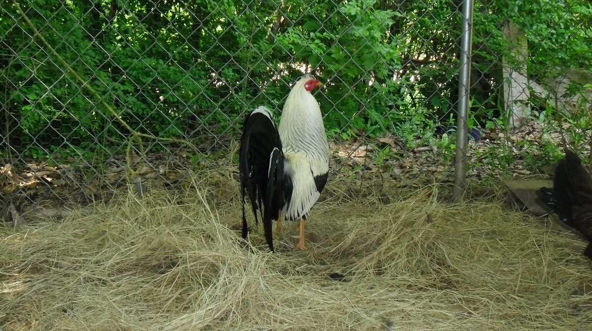we think hes really pretty and he thinks he top dog untill we put him in with the full grown hens and he hides in the cornor :)