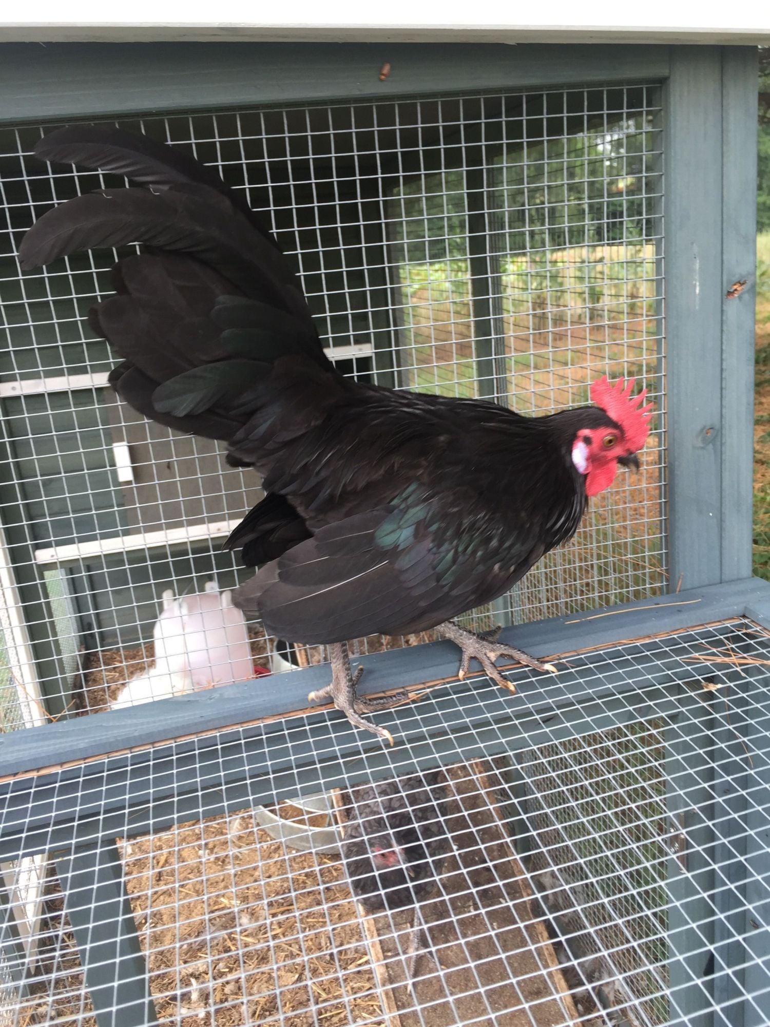 My favorite chicken, Whitey. Goofy the Isa brown is next to him(RIP)Whitey and Mrs. Whitey(creative name, I know lol) and "their" chicks, which are actually an austrolorp/BO and an austrolorp/Isa brown, Mrs. Whitey hatched them.![]()