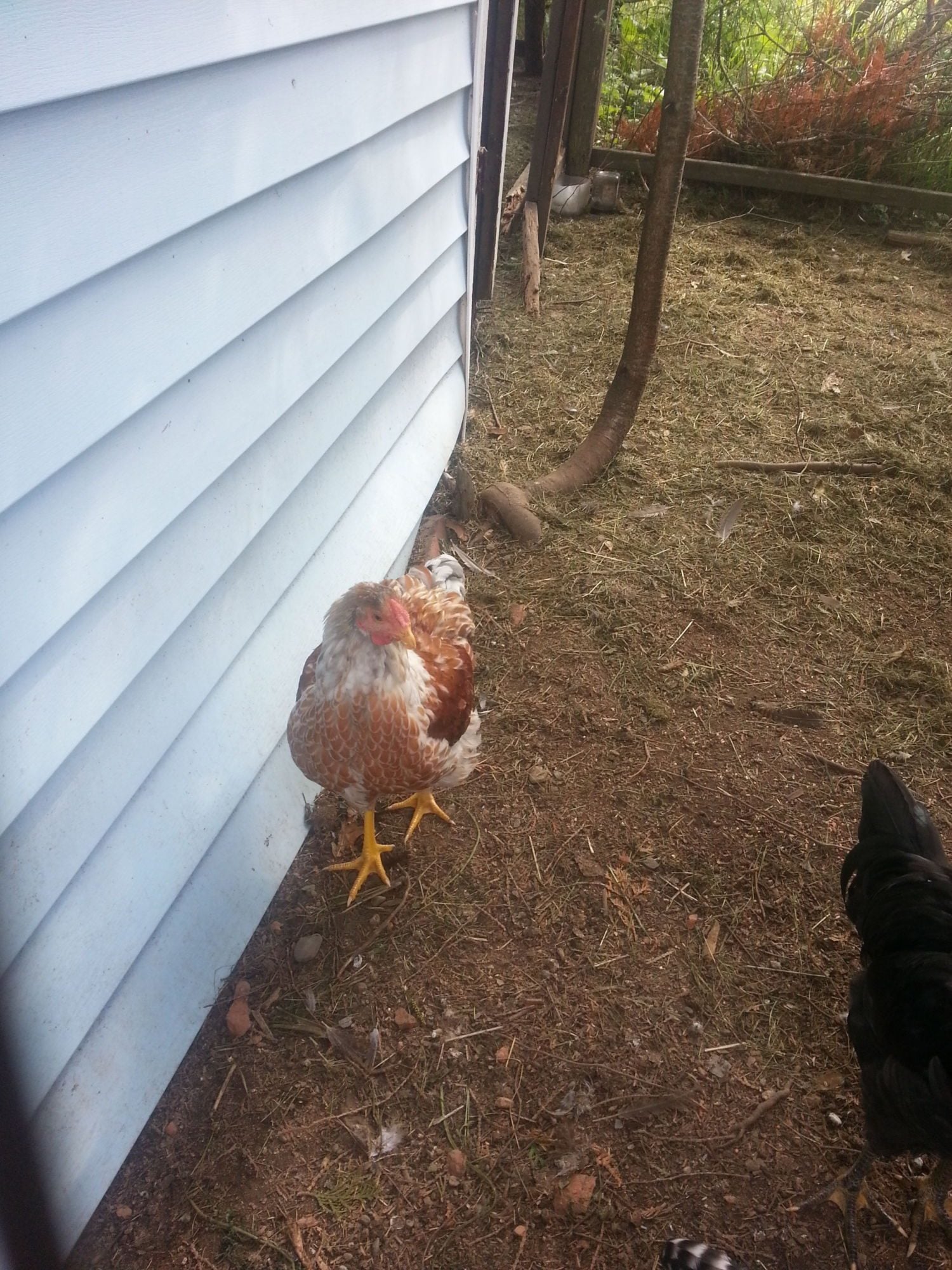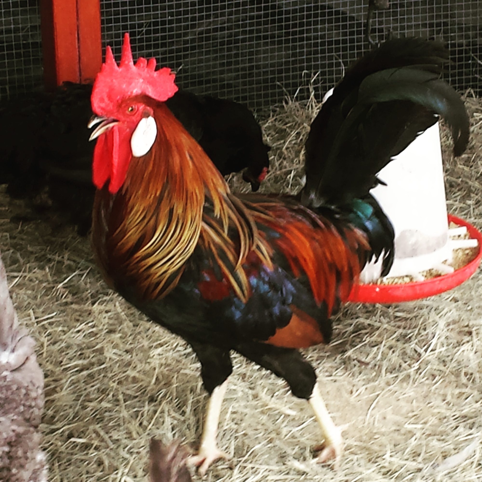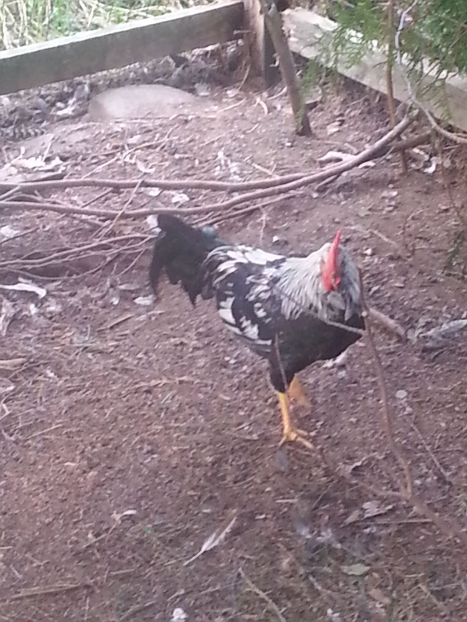 I only hatched a few from this cross, I actually wanted to keep the hens. But, the neighbors dog got all of those chicks except this rooster. I don't like how large his comb and wattles got, but he has a very good temperament. I culled his father at about 9 months of age, he was mean as a snake. This rooster is very calm to work around, is good to his hens and has never challenged me once.