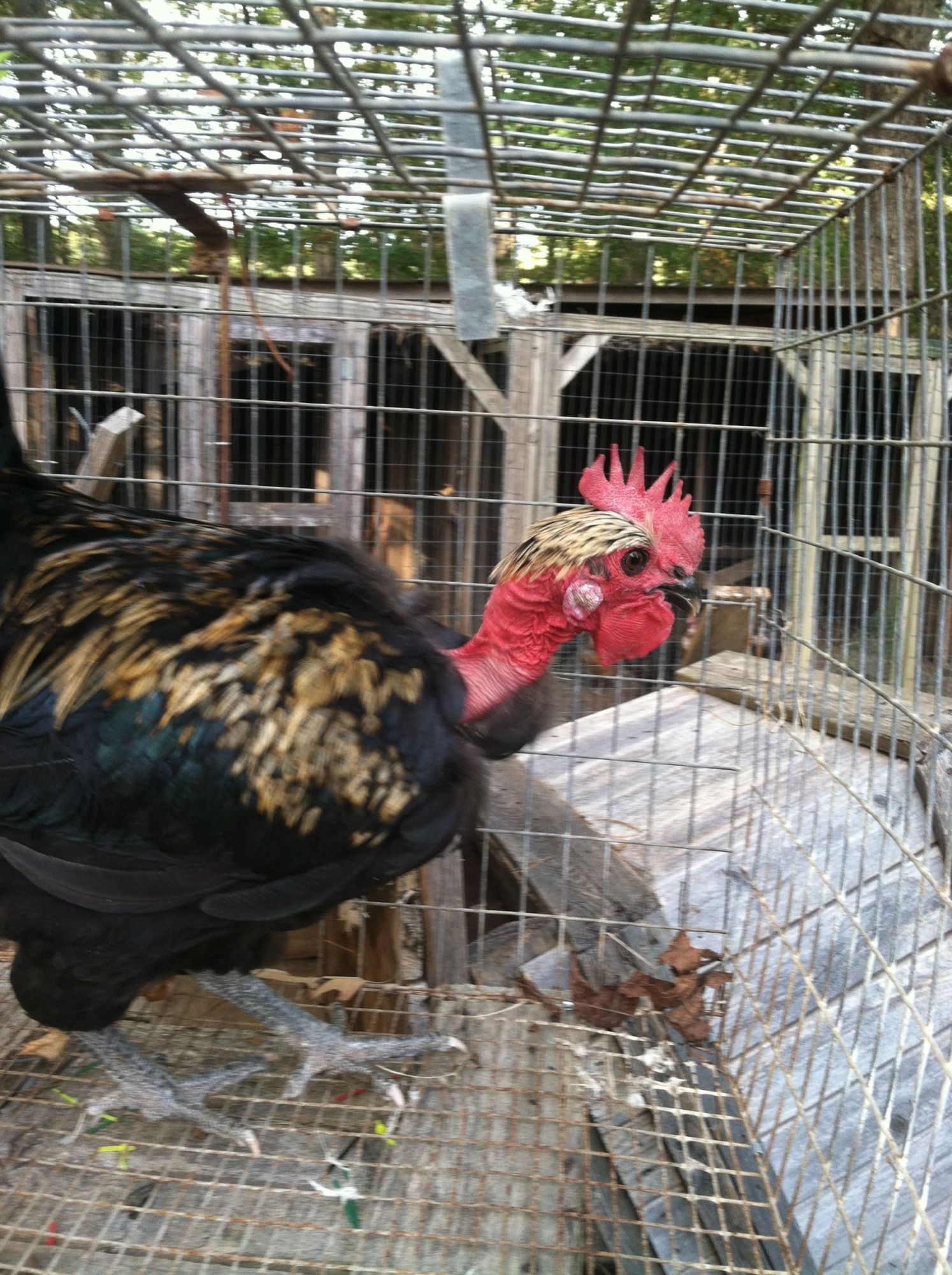Really cool looking roo. I rescued a naked neck rooster someone dumped at our church parking lot. He had the best personality but he was so huge and scared the lfe out of my bantam frizzle hen so I finally had to re home him so my hen could come out of hiding . I really like him alot.